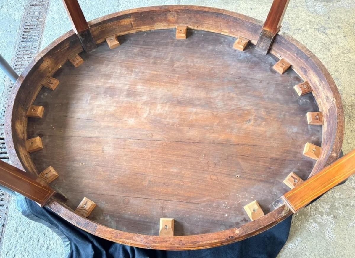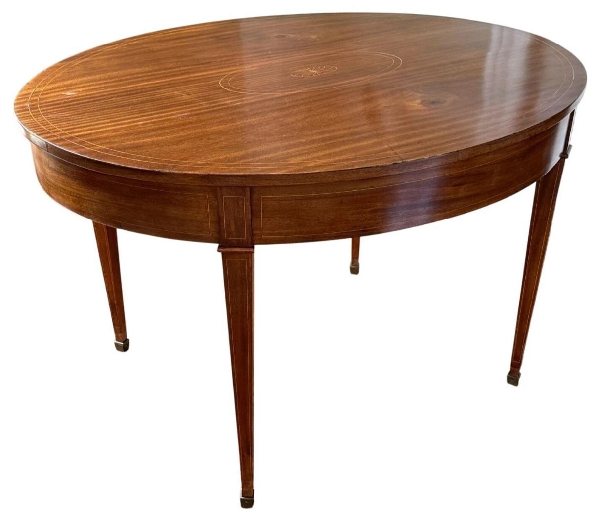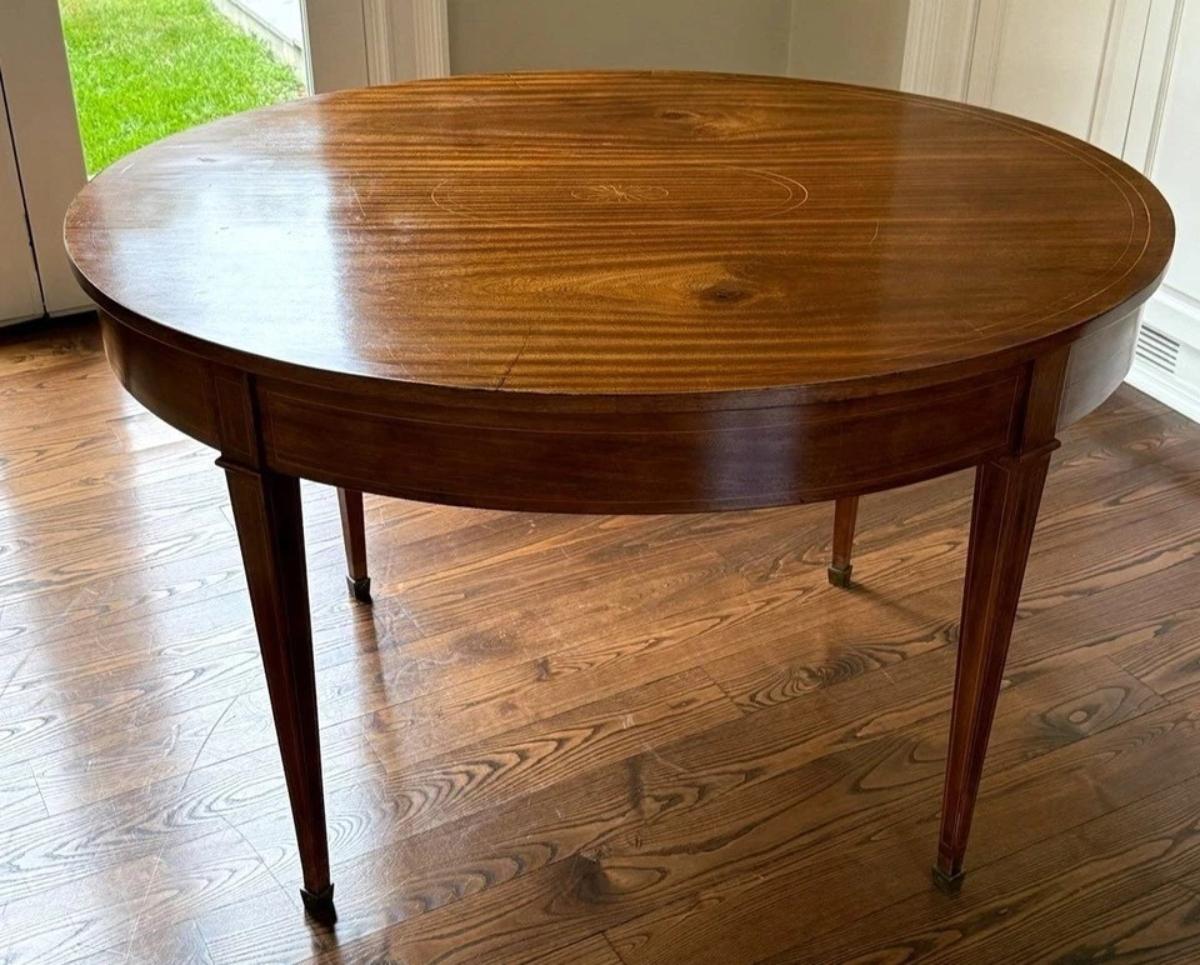 Antique American Federal Neoclassical Oval Inlay Wood Dining Banquet Table 48" x 38.5" x 30"