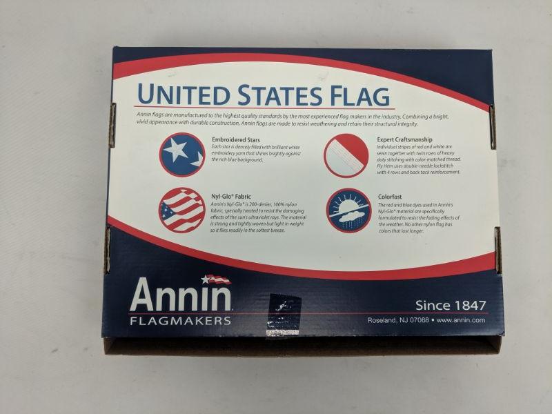 American Flag, 3' x 5', Nylon SolarGuard Nyl-Glo with Sewn Stripes, Embroidered Stars and Brass Grommets