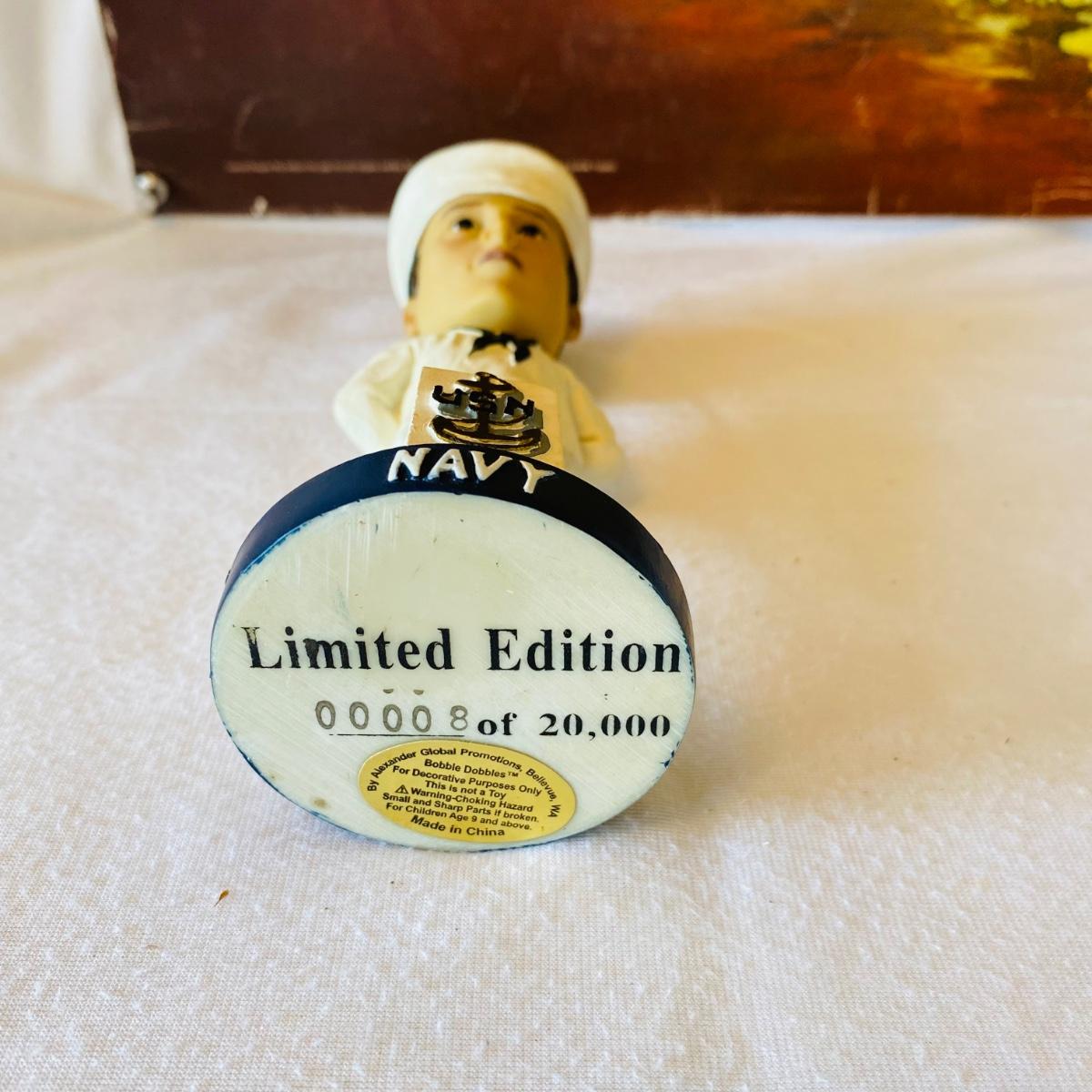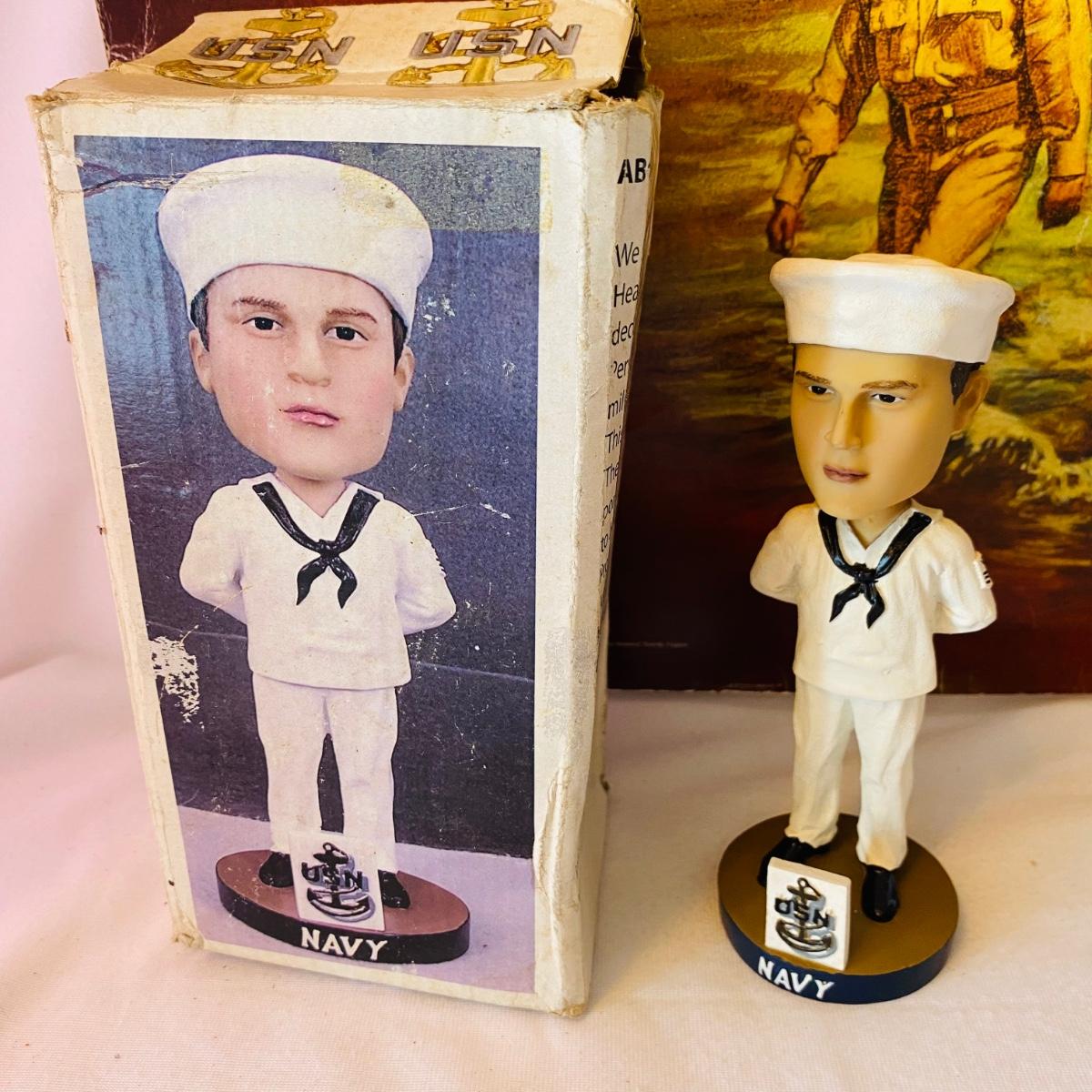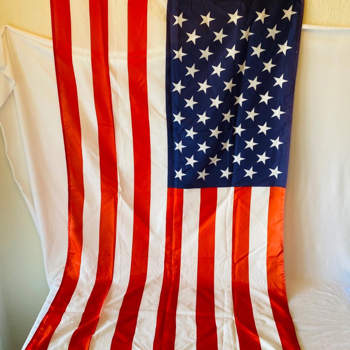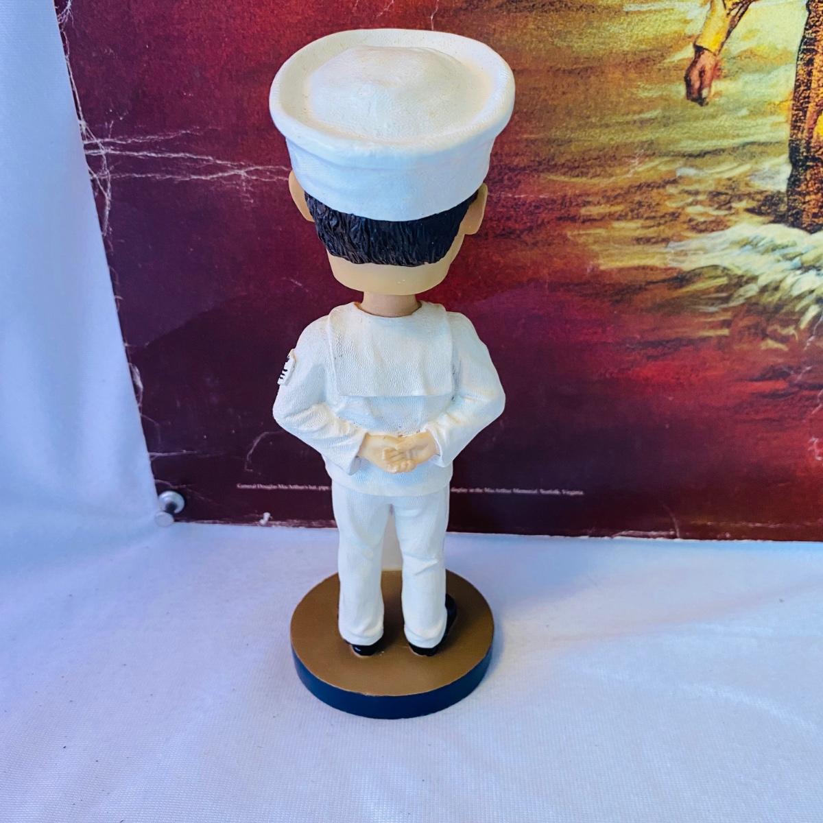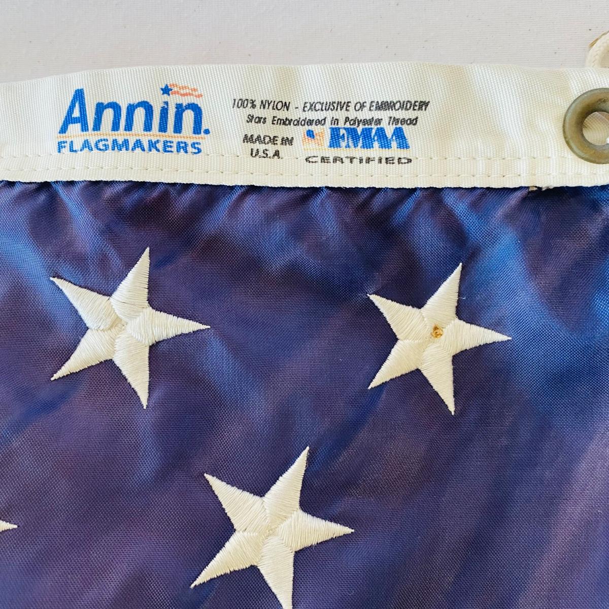 Lot includes six 3’ x 5’ American flags. Two of them are made by Annin Flagmakers. Good condition. Also includes 1987 Ray-Ban sunglasses poster with General MacArthur advertising Bausch and Lomb measures 24” x 34” in worn condition. 7” Limited Edition Navy bobble head by Bobbie Dobbles - Alexander Global Promotions.