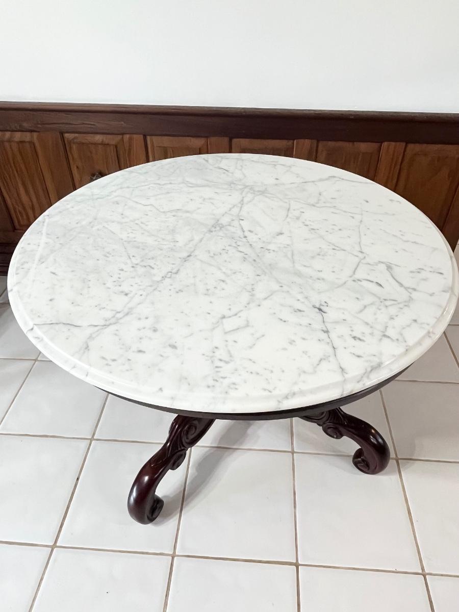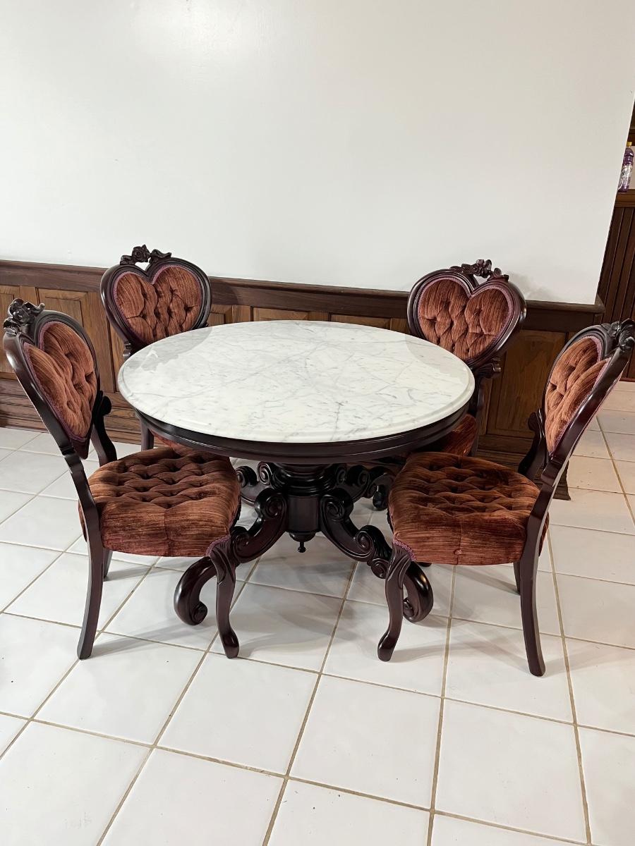AMERICAN FURNITURE GALLERIES INC. ~ Beautiful Mahogany Rose ~ Carrara Marble Top Table & Chairs Set