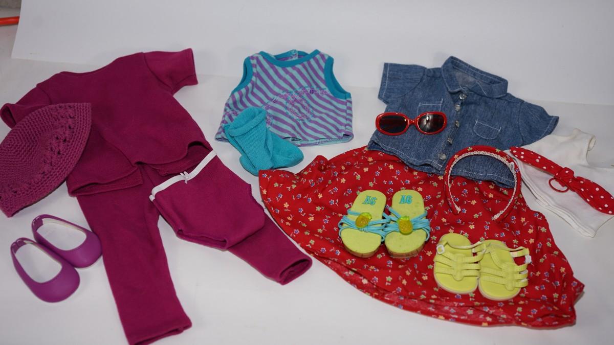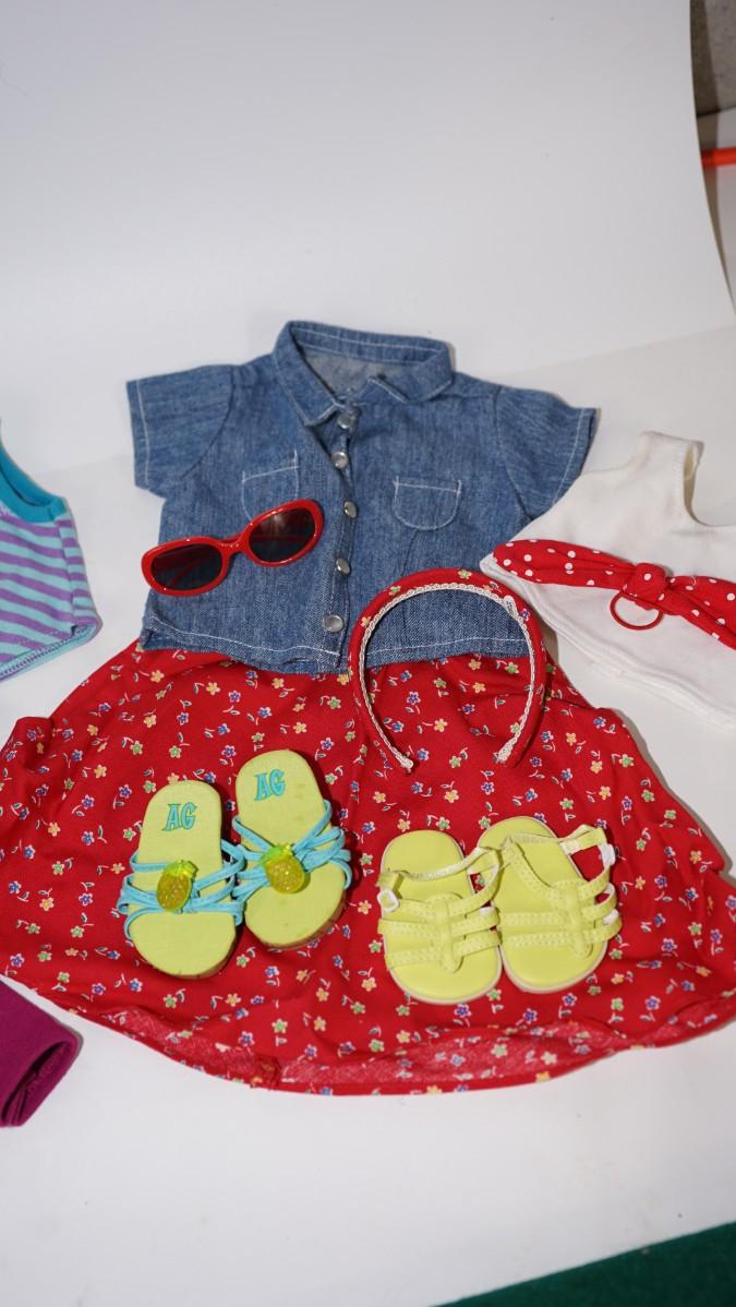 AMERICAN GIRL CLOTHING LOT. SEVEN ARTICLES & FOUR ACCESSORIES