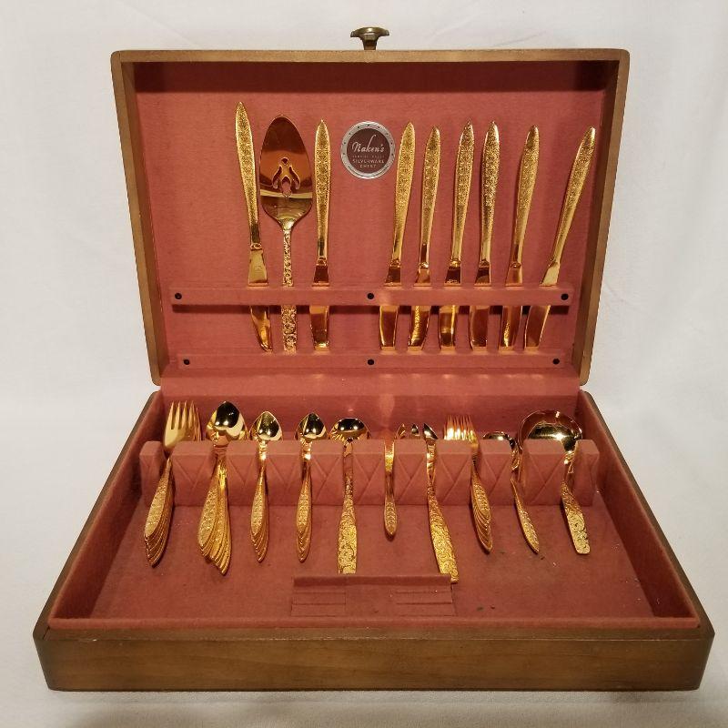 The flatware box is in great condition. Manufactured by M.I. Naken Co. ““ Chicago . Gold is in again!