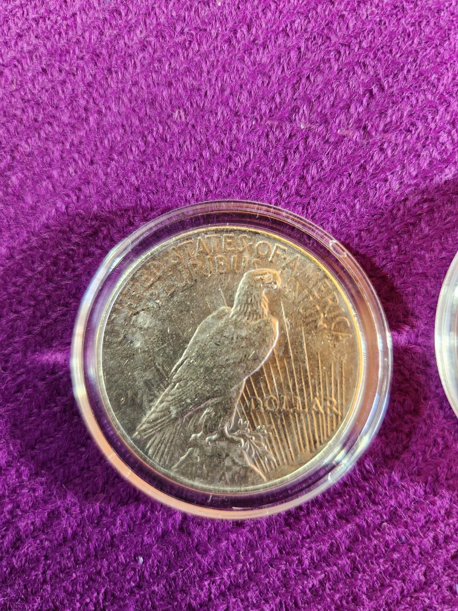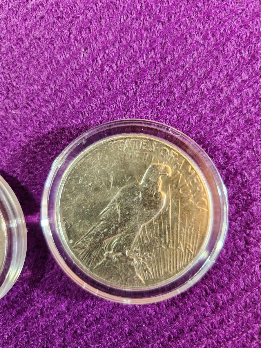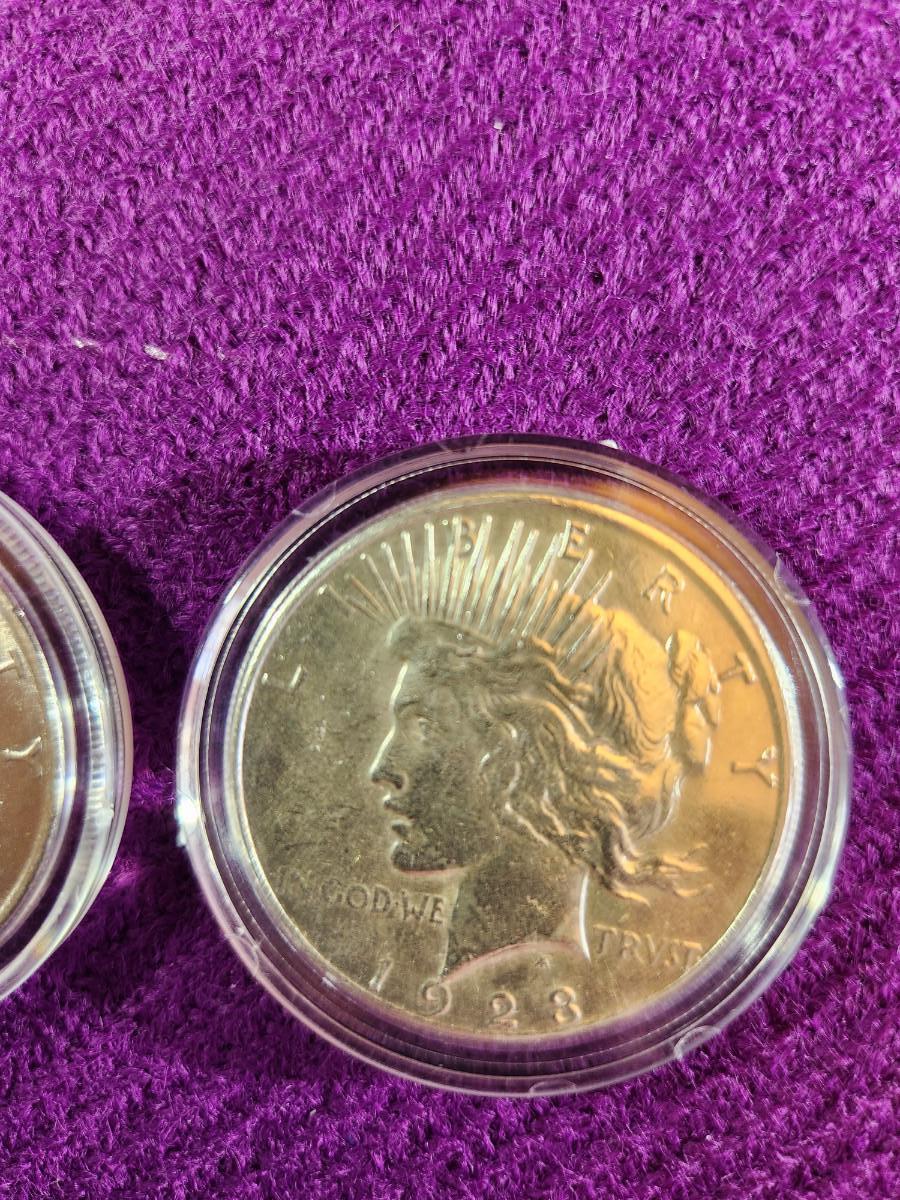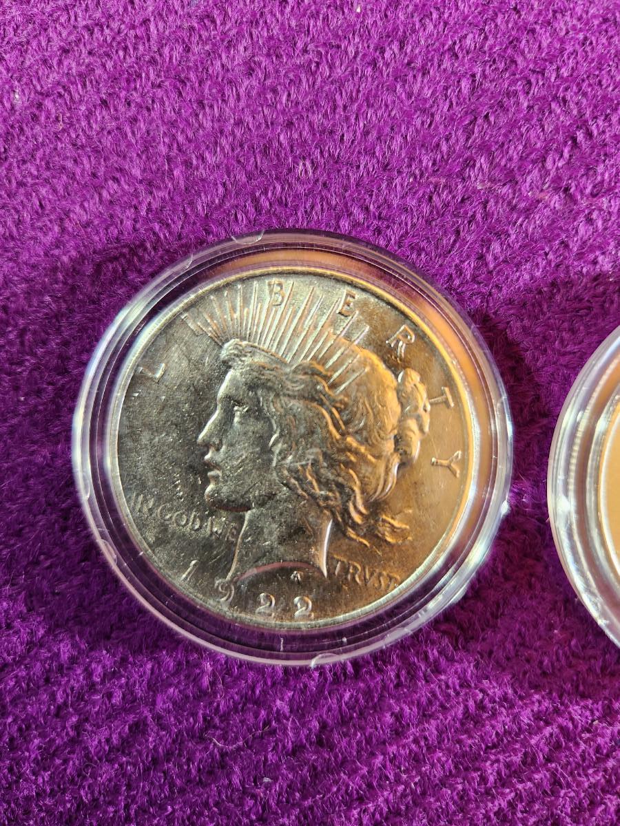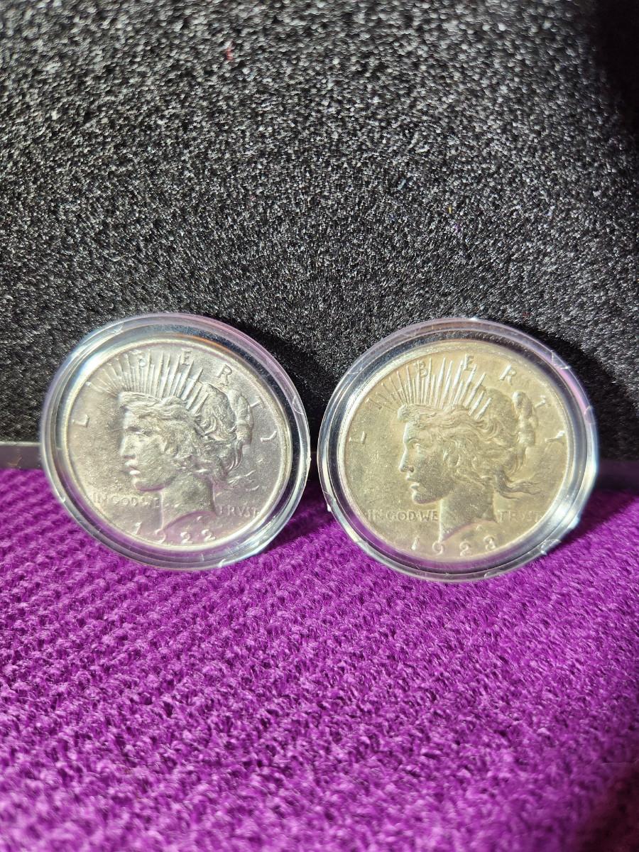 This auction lot is for 2 American Historic Society Encased Peace Dollar Coins. One is dated 1922 and the other 1923. Appear to be in extra nice condition. 90% Silver.
