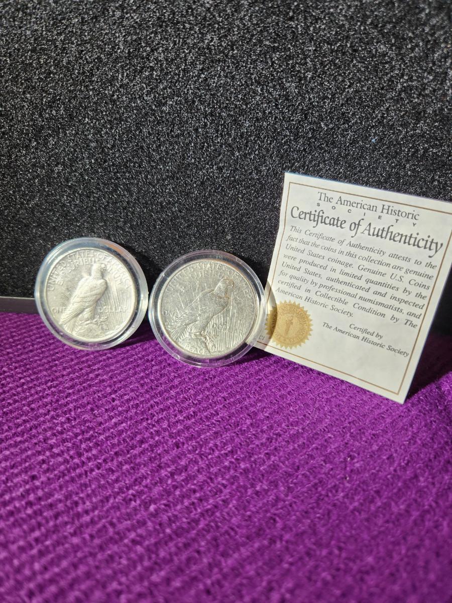 American Historic Society Encased Peace Dollar Coins