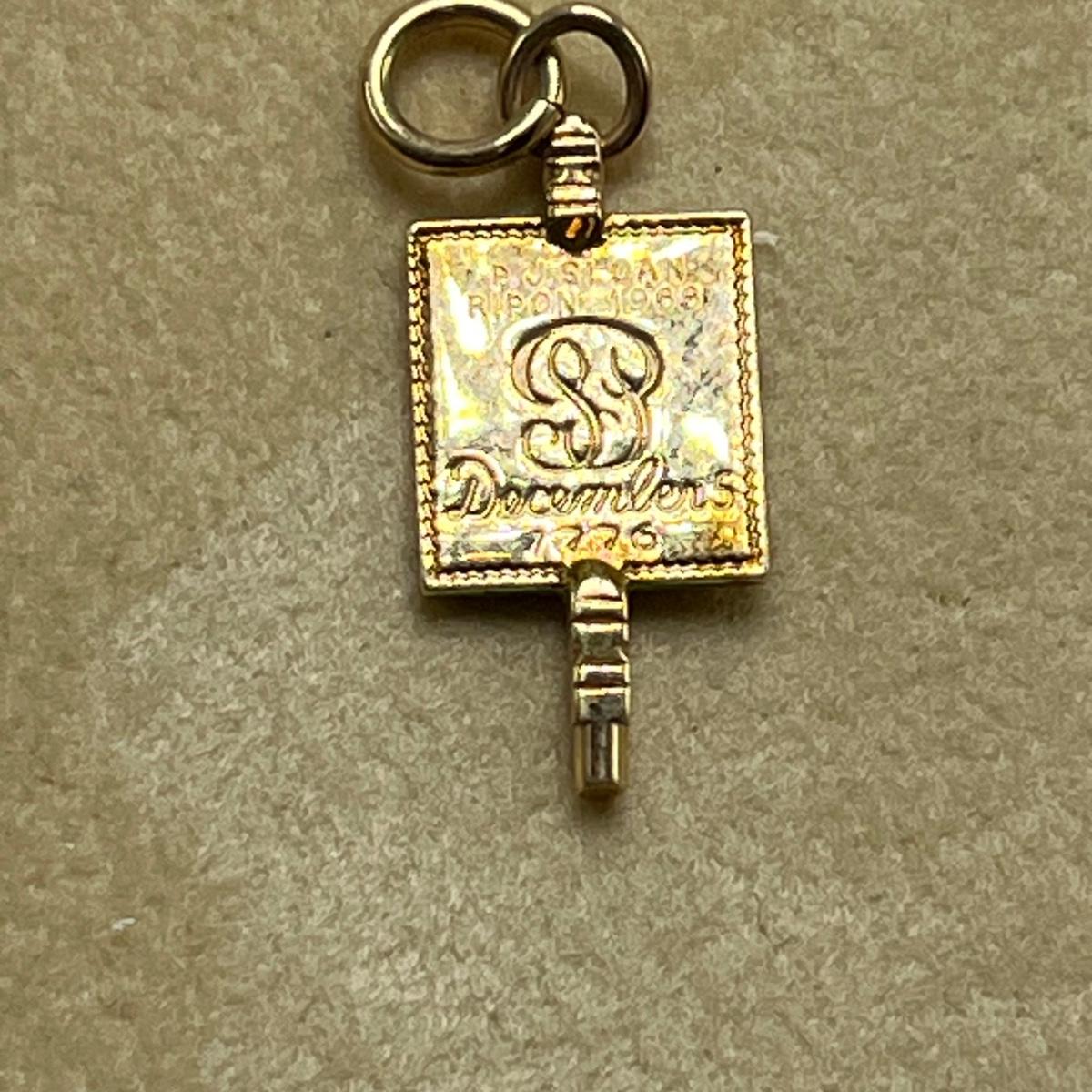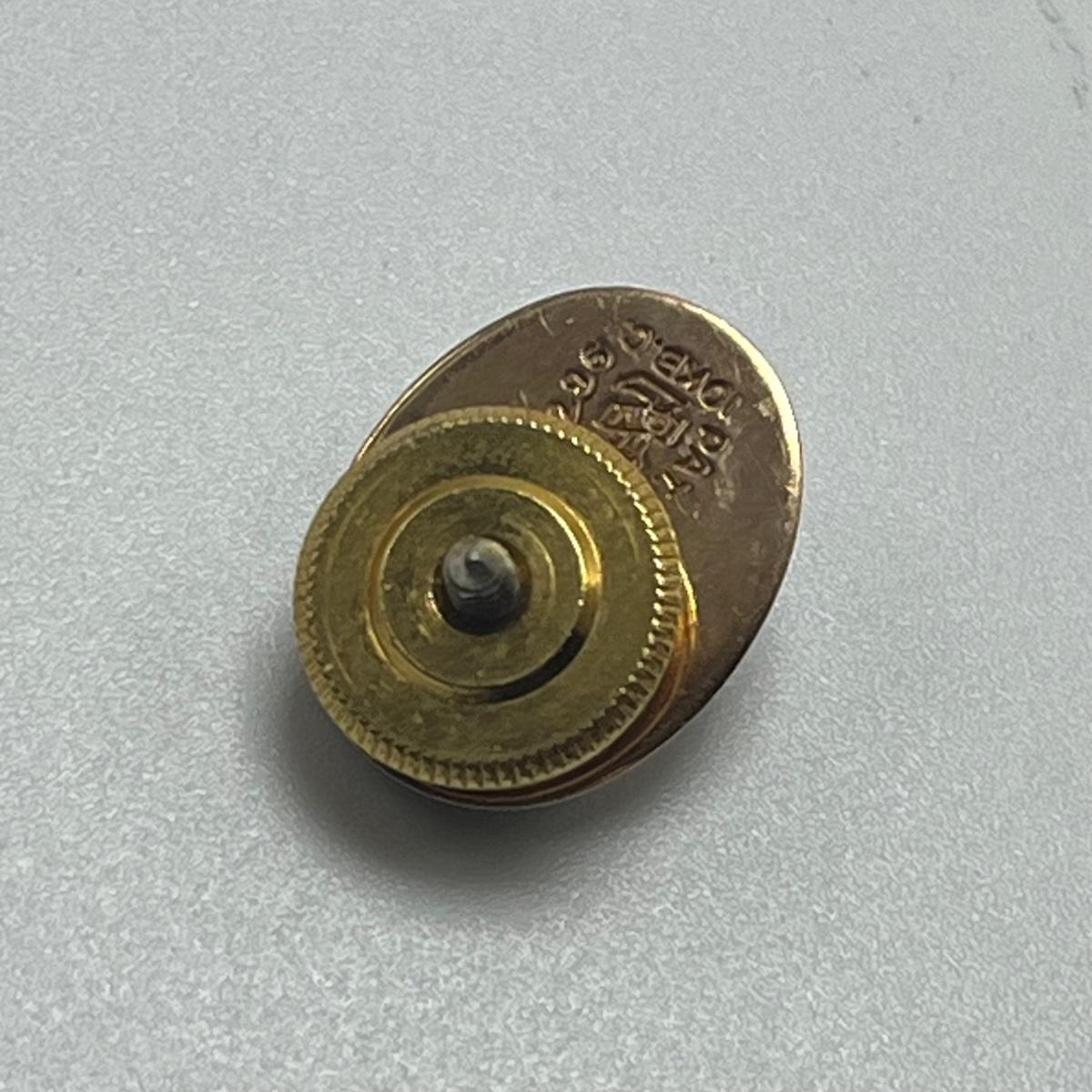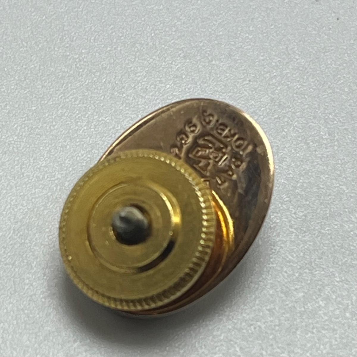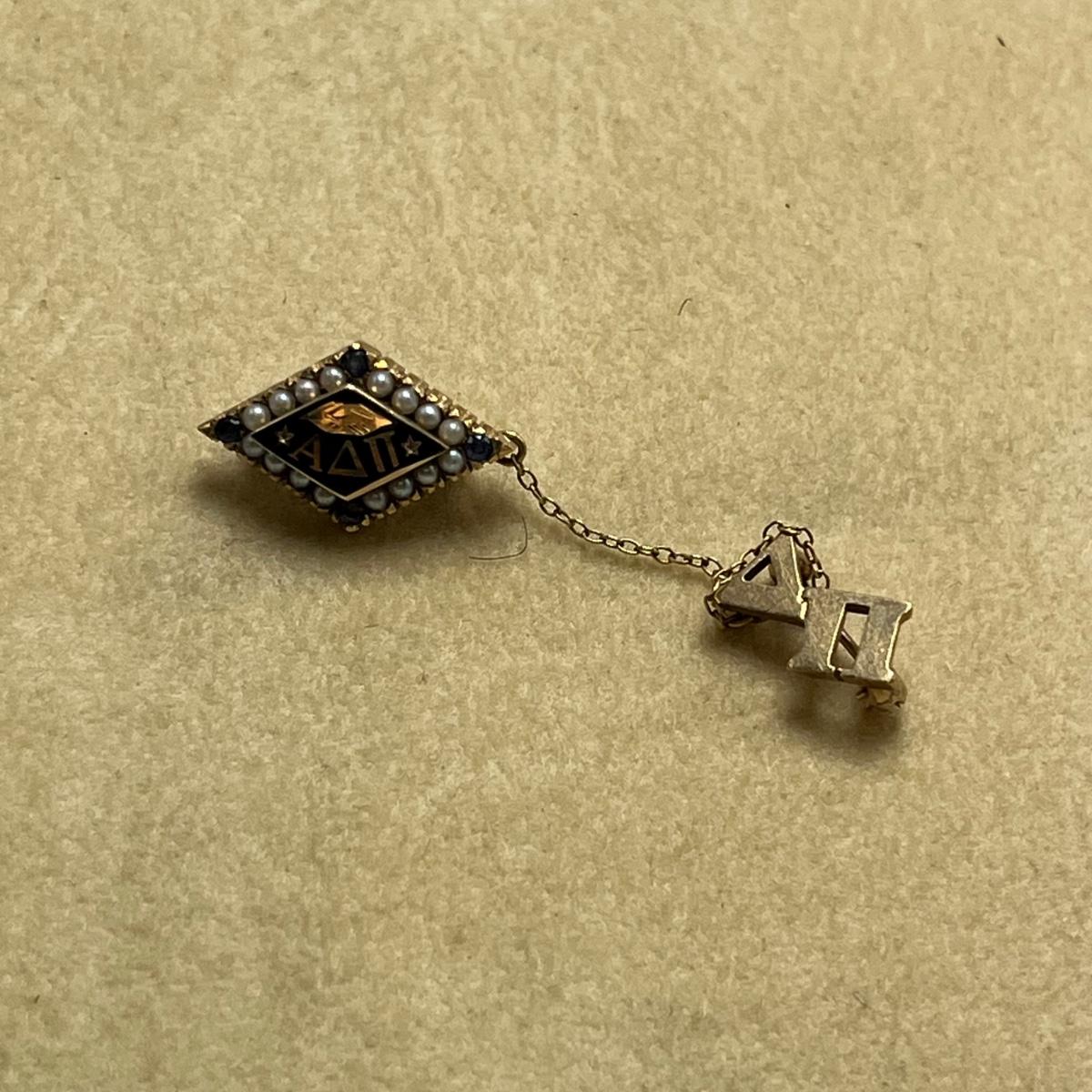 Lot includes an American Legion pin and marked '10KB.C.' with a gemstone that our diamond tester indicated is a diamond, a Barbados Charm marked 14k, a fraternity pin marked 10k, a fraternity charm, and a flag pin with two military ribbons. Also includes pin with sapphire colored stone. All sales are final. No returns or refunds. Please bid accordingly.