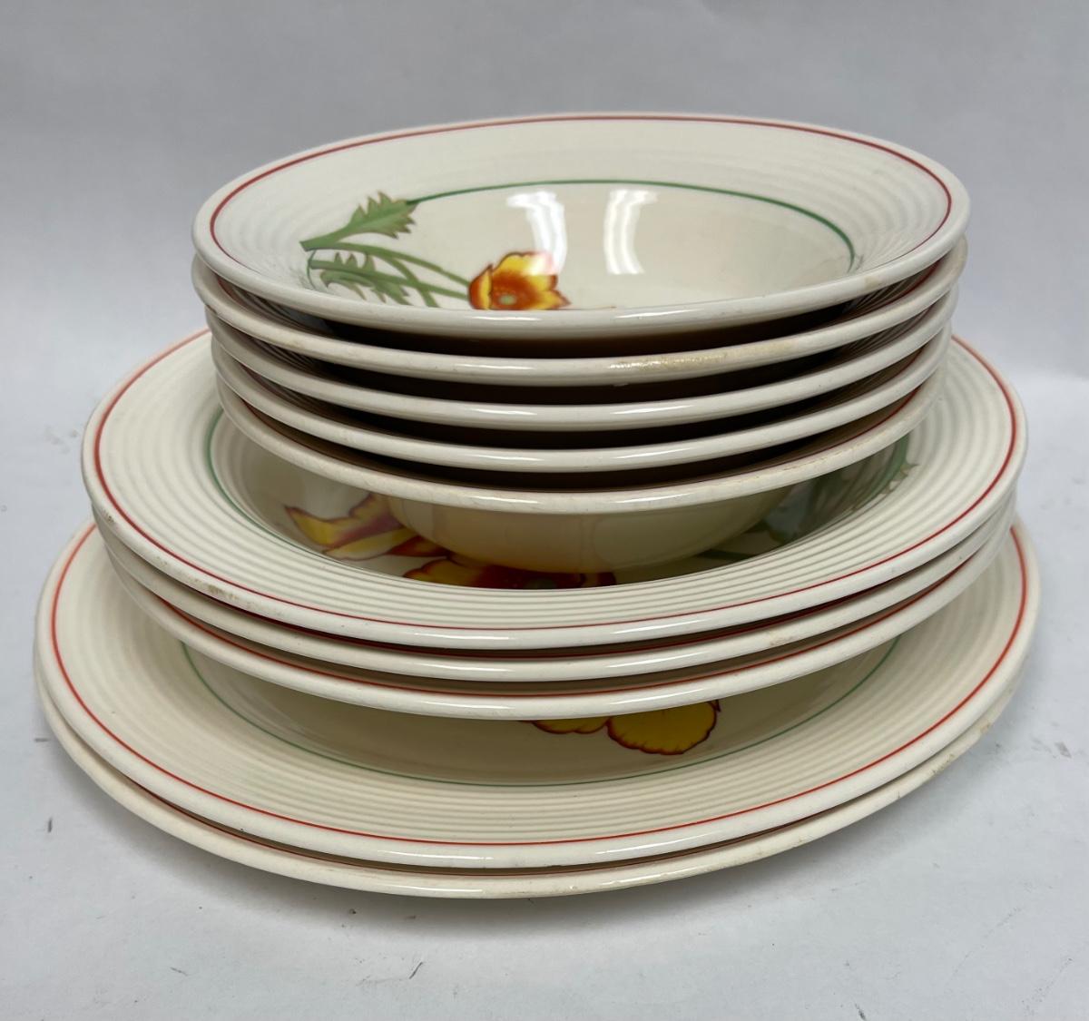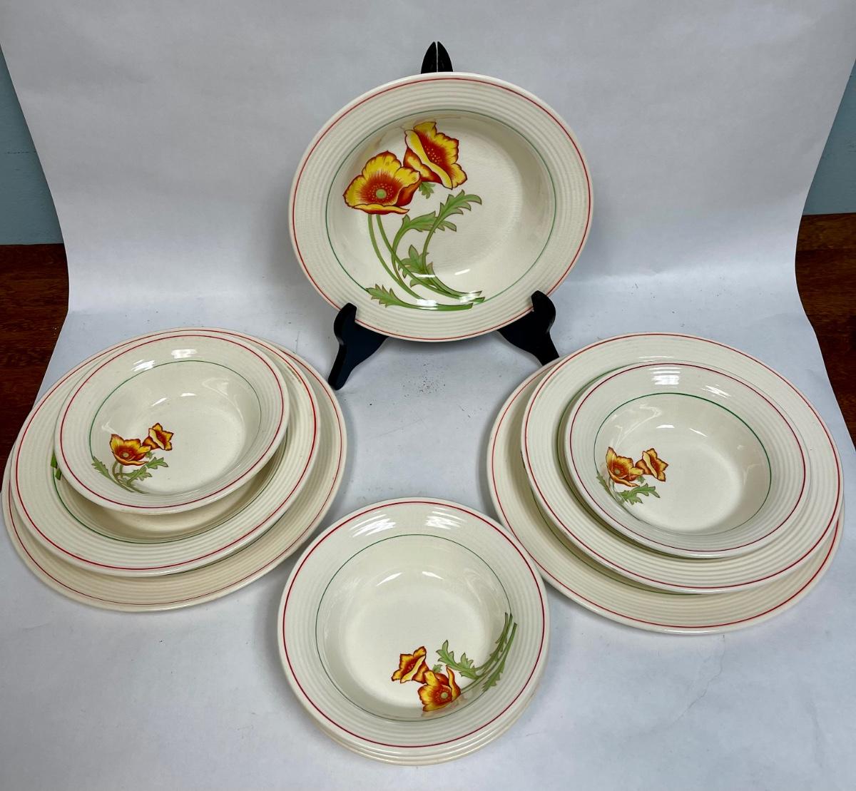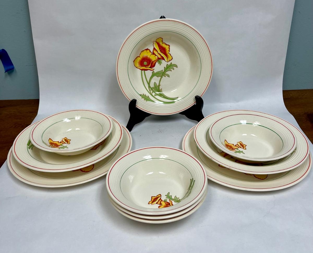 Vintage American Limoges Poppies 2 dinner plates,3 flat bowls, 5 bowls