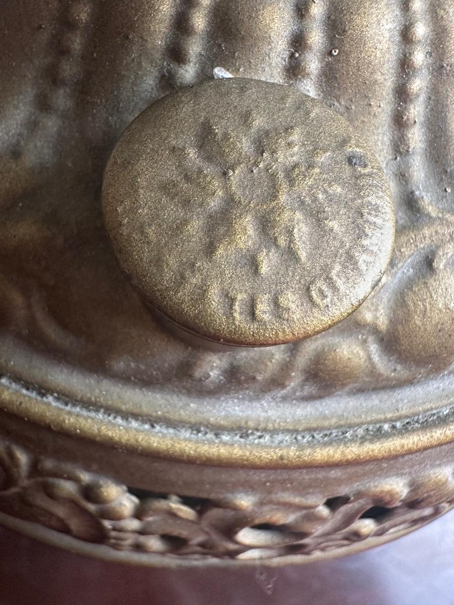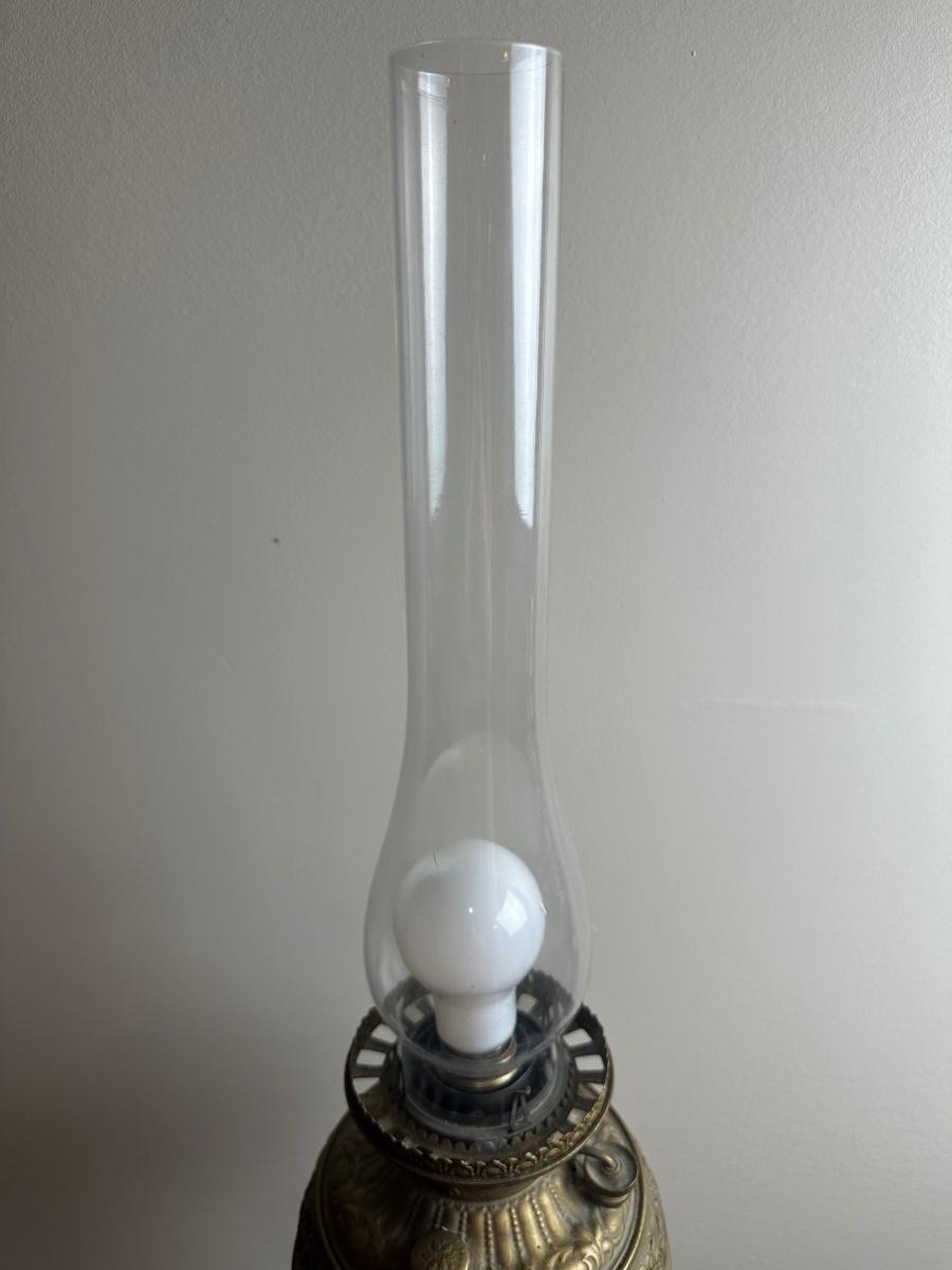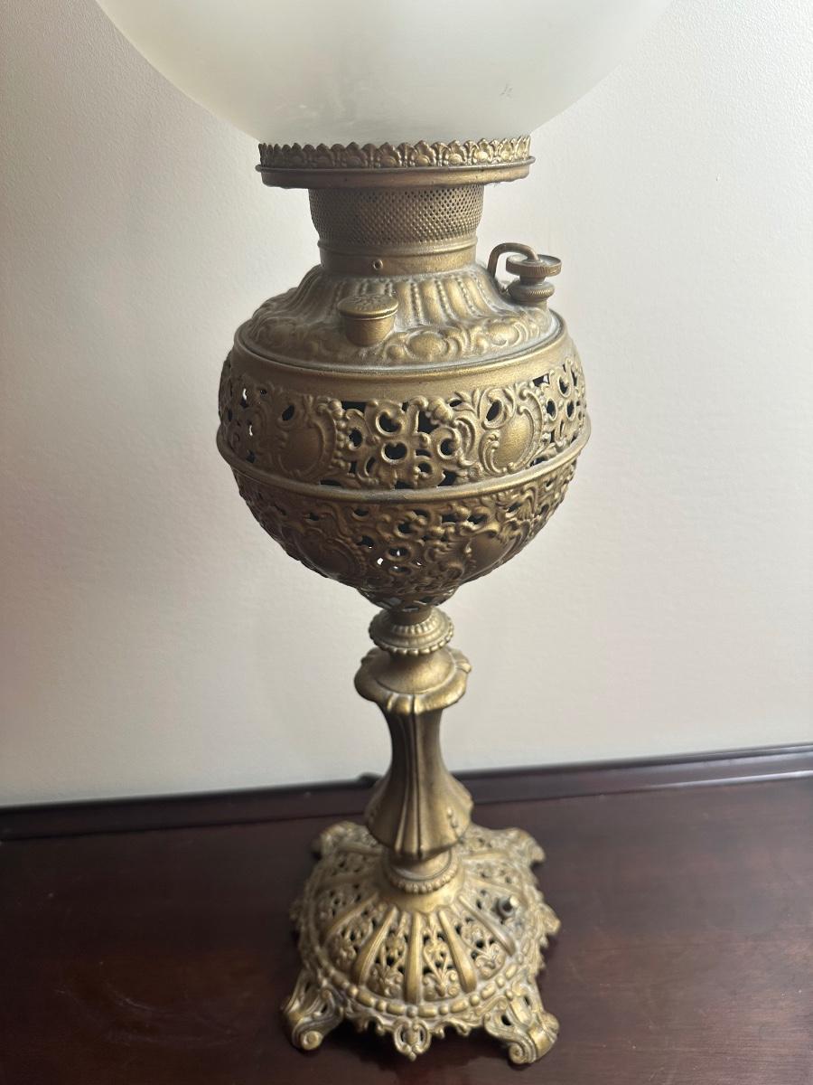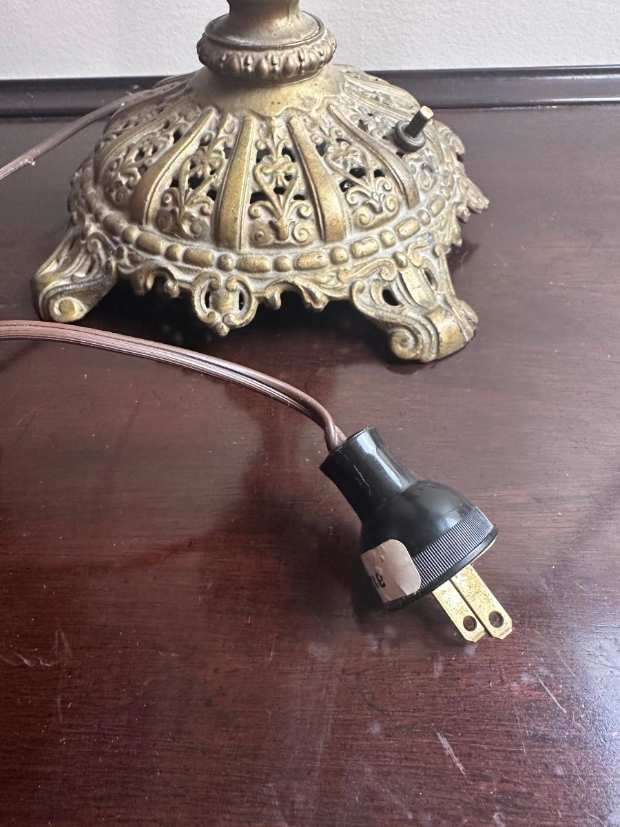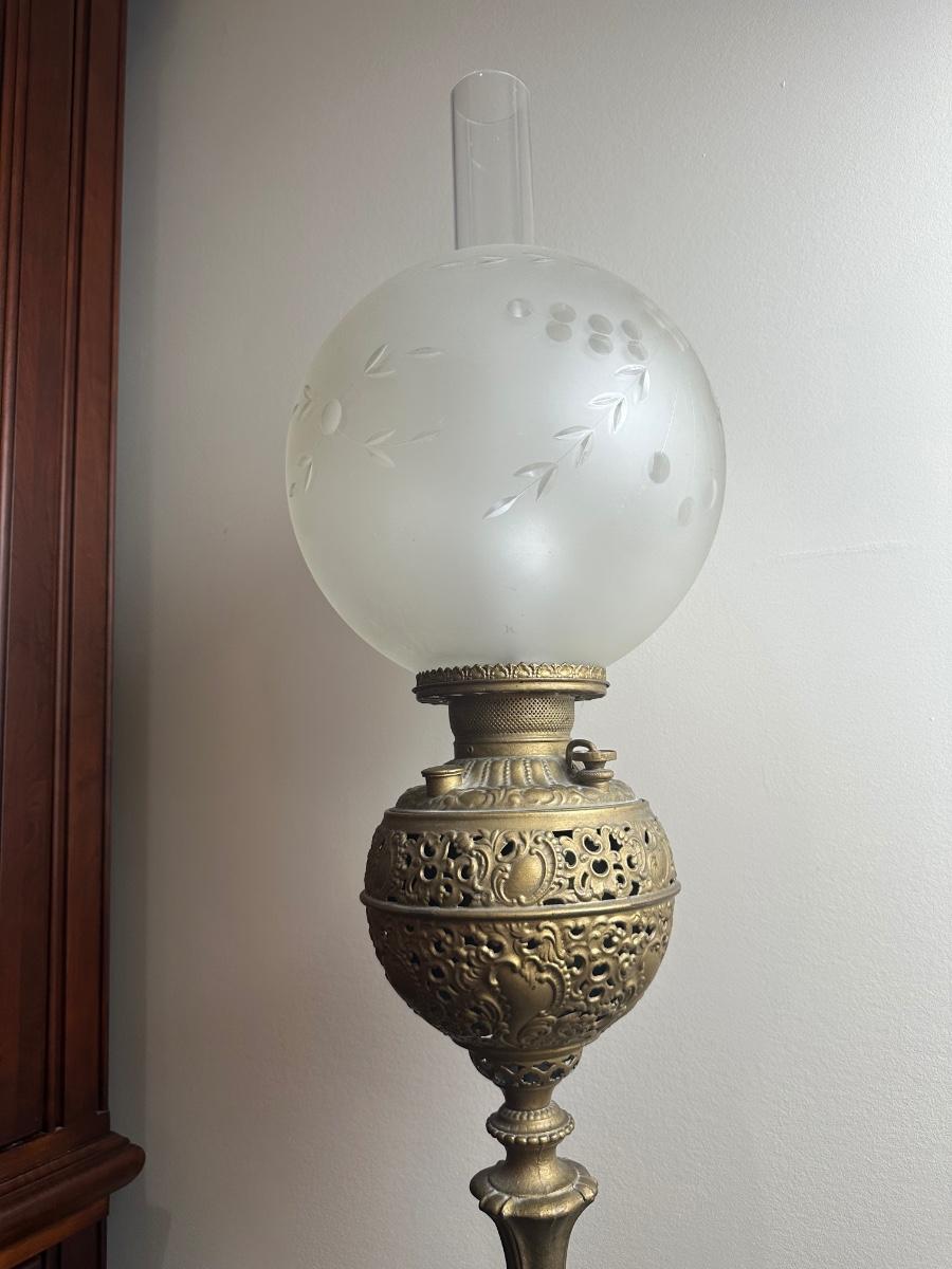 American Made Ornate Brass-Tone Table Lamp with Etched Glass Globe