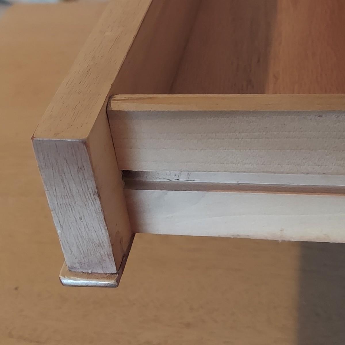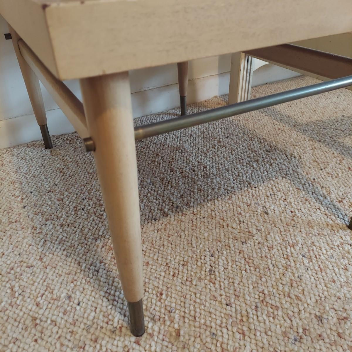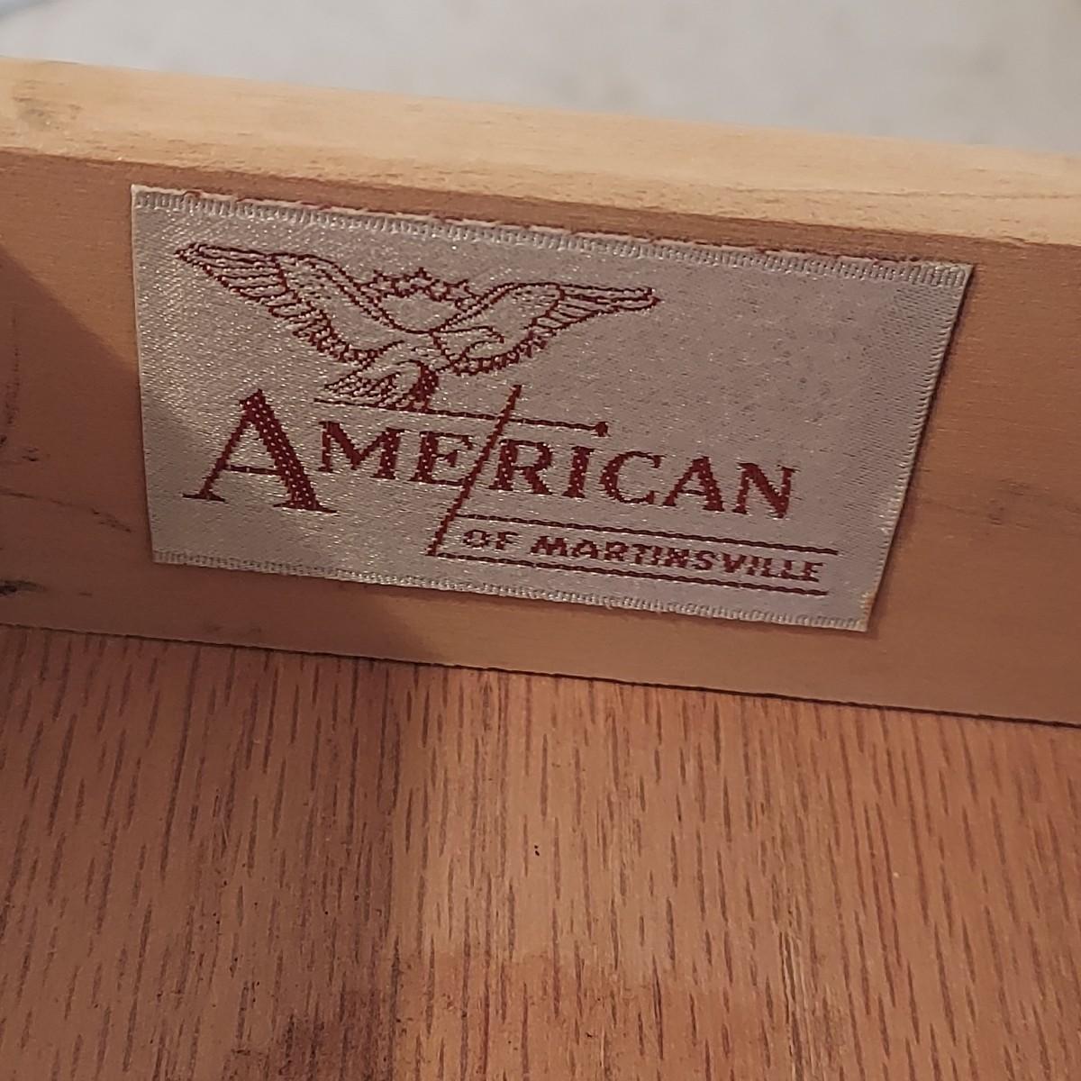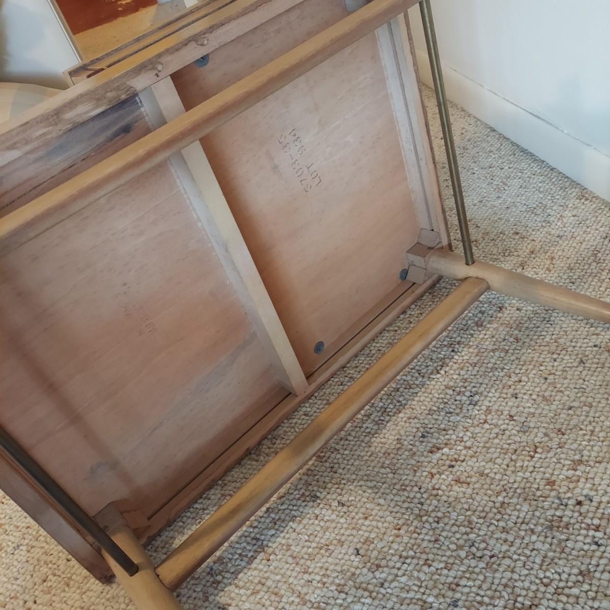 Vintage MCM nightstand by American of Martinsville. Two tier style with shallow drawer. Light blonde wood finish with brass-like accents. Measures 20” x 28” x 24"H. Please see photos for details. Local Pickup Only