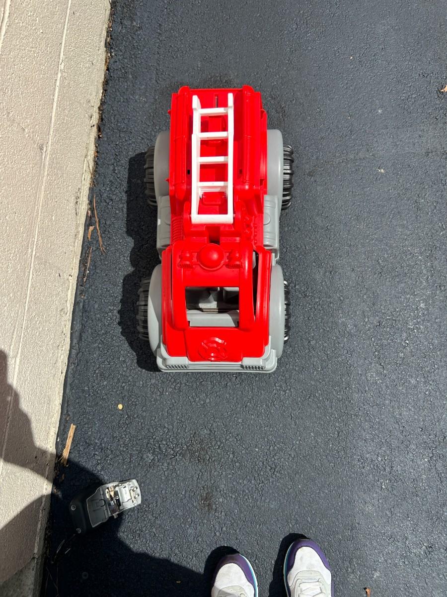 • SUPER FUN FIRE TRUCK—The American Plastic Toys Gigantic Fire Truck is two feet long and features a removable ladder, an extendable bucket, and large knobby wheels for both indoor and outdoor play. It is recommended for children ages 2 and up.