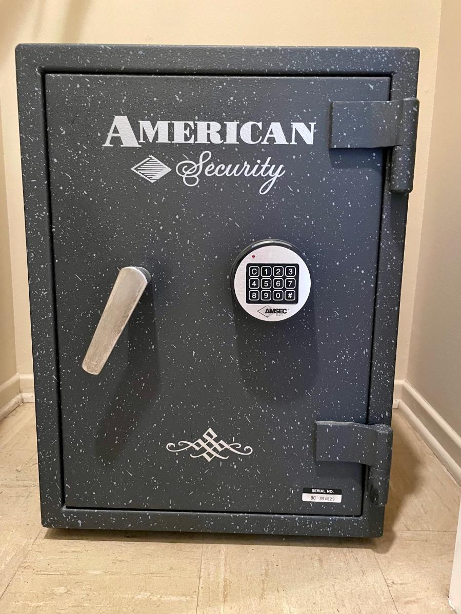 American Security Floor Safe, tested and opens/closes perfectly. Fireproof. PICKUP WILL BE IN HINTINGTON BEACH FOR THIS ITEM.