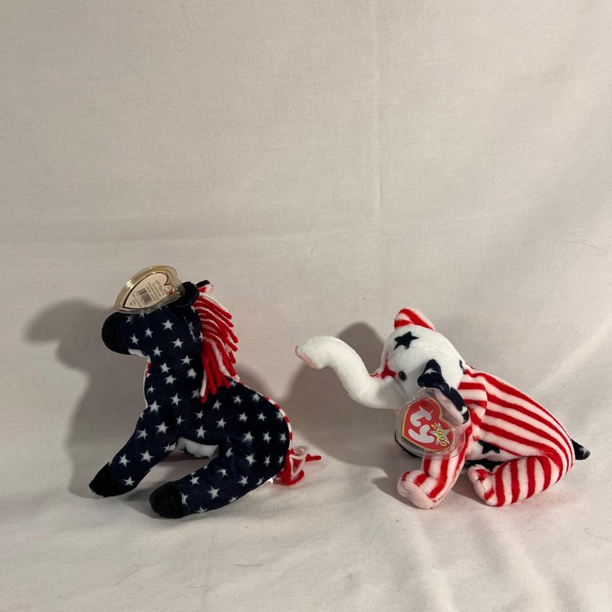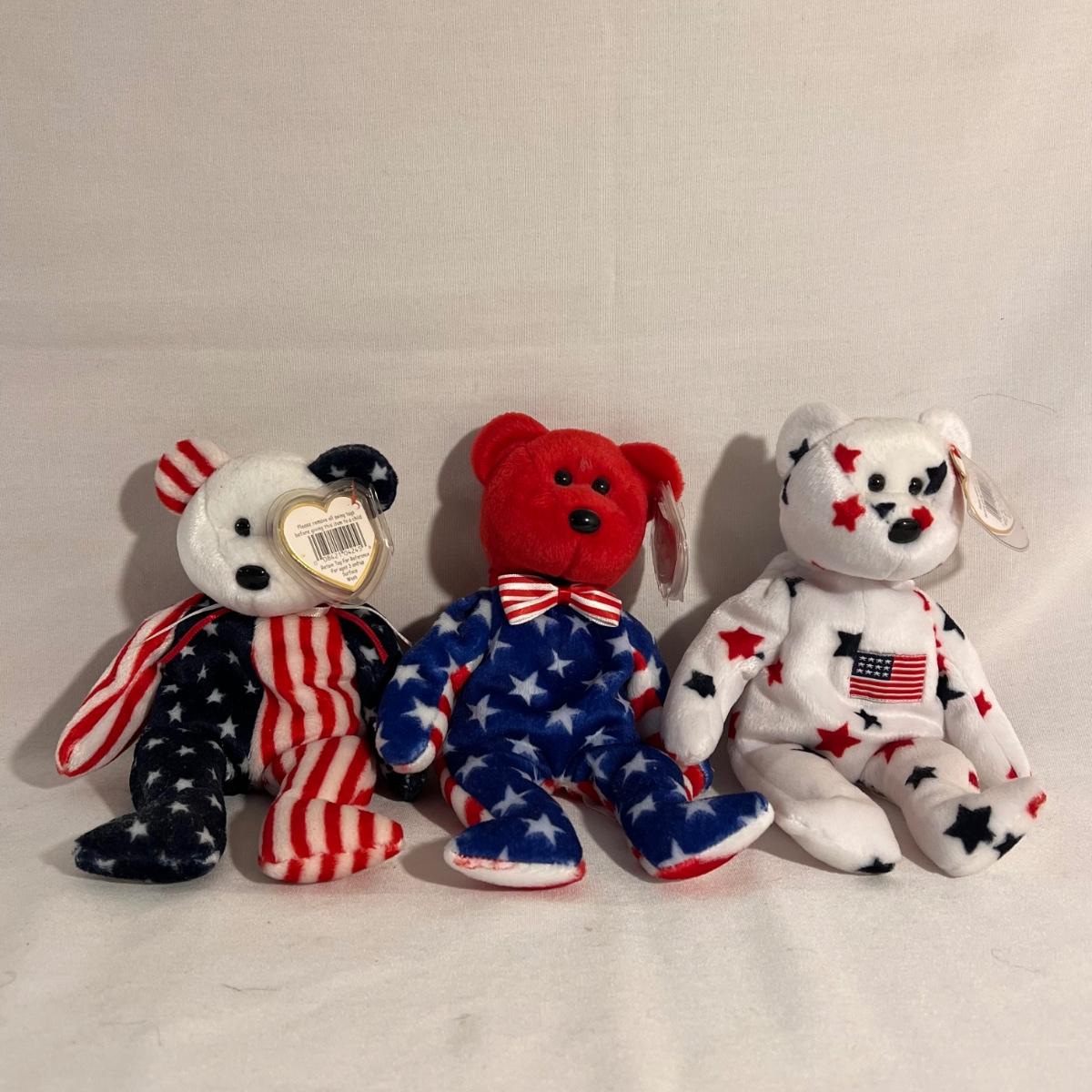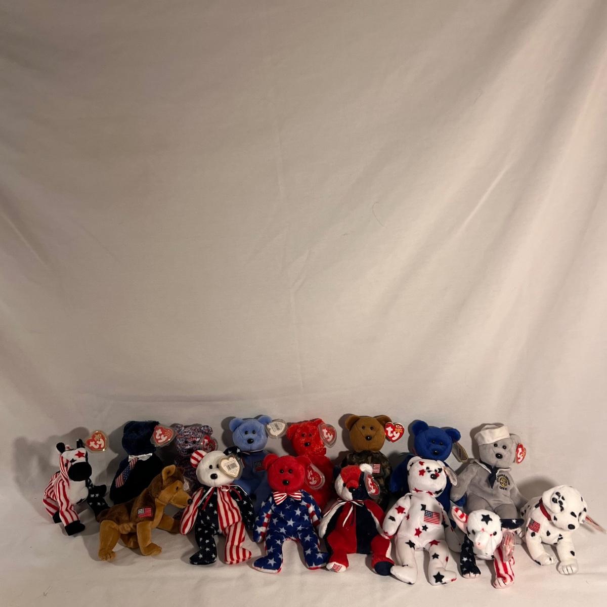 Lot includes fifteen American themed Beanie Babies. All babies have their original tags attached - see pictures included of some tags. Feel free to come to preview if you’re interested in seeing more of the tags and details. Shipping available.