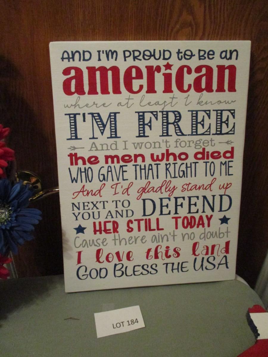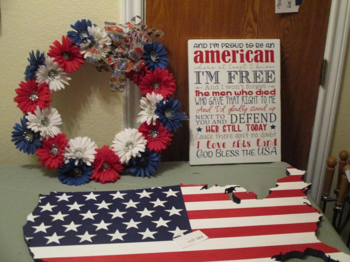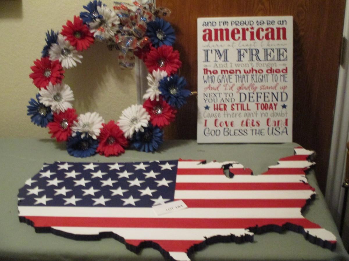 God Bless the USA on Canvas, Wreath, Painted Wooden America