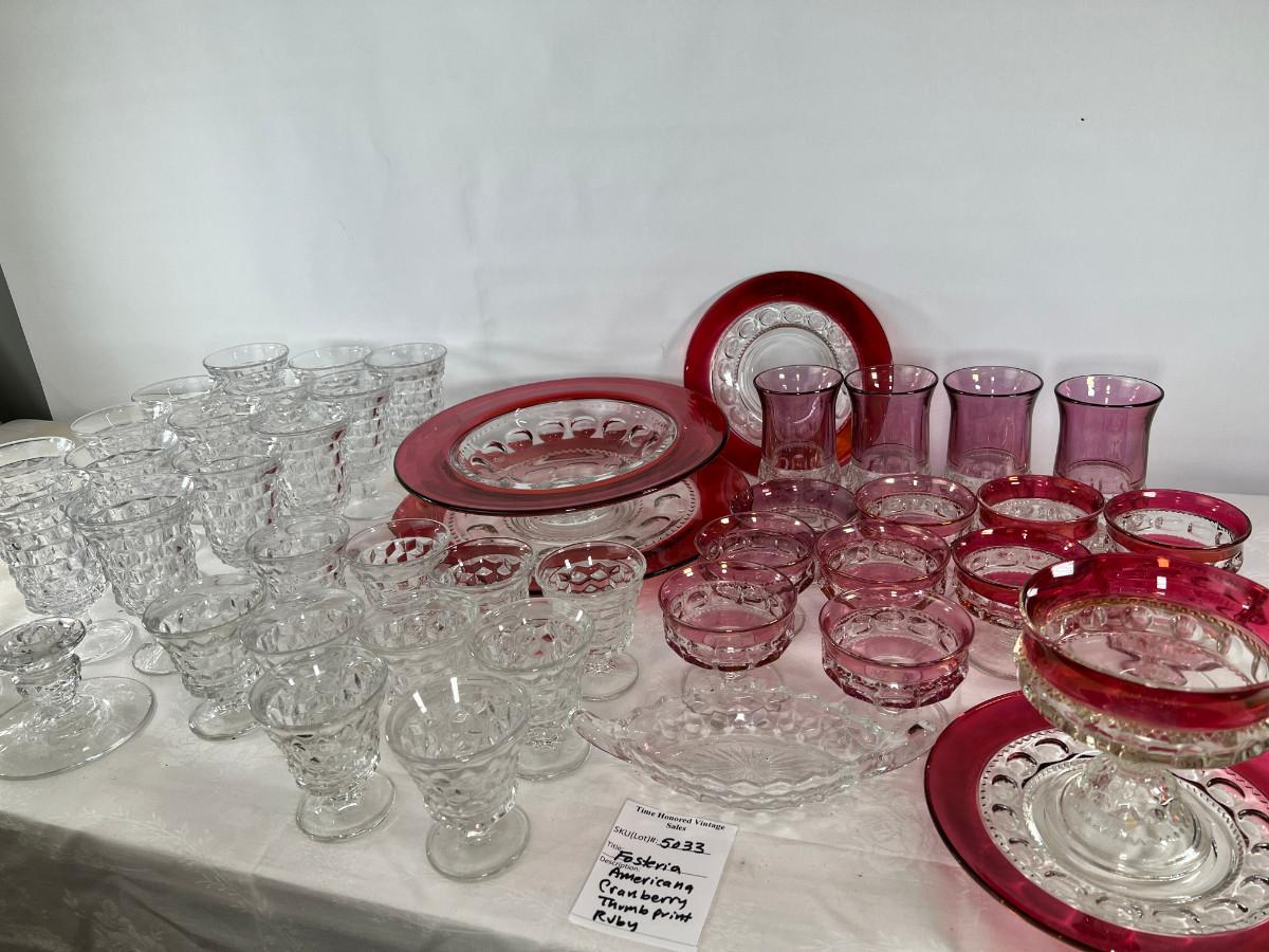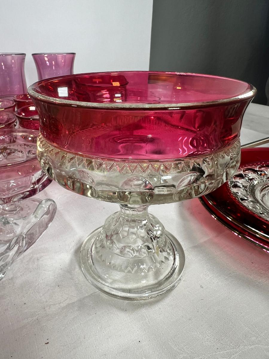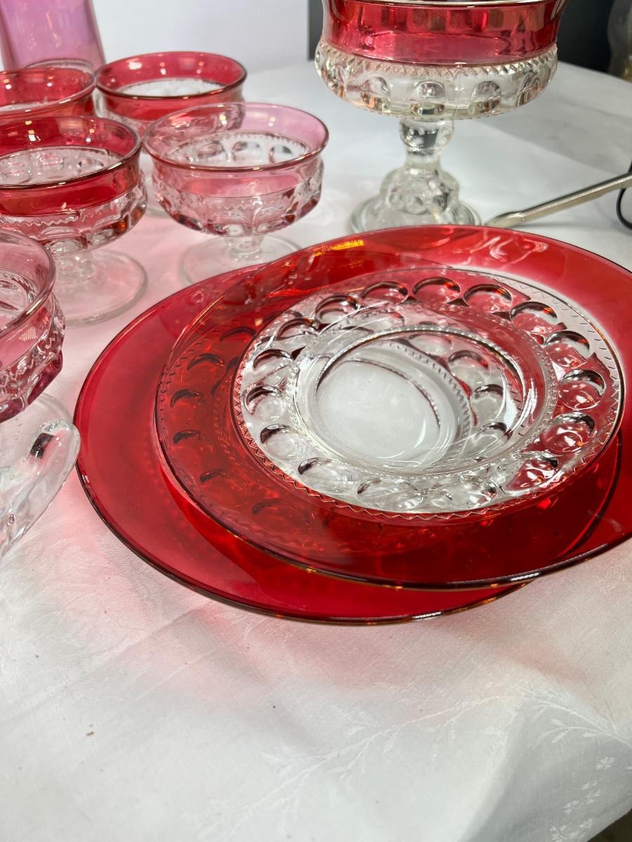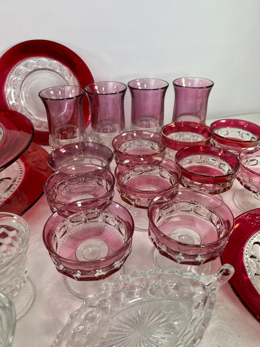 American thumb print cranberry glass, Fostoria Americana