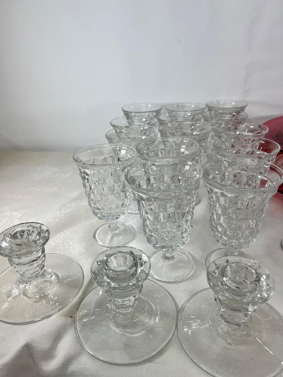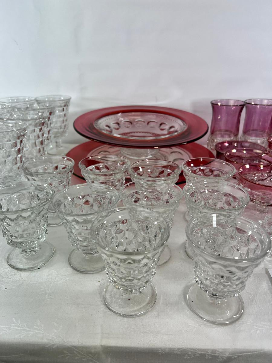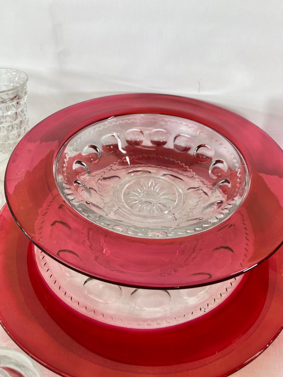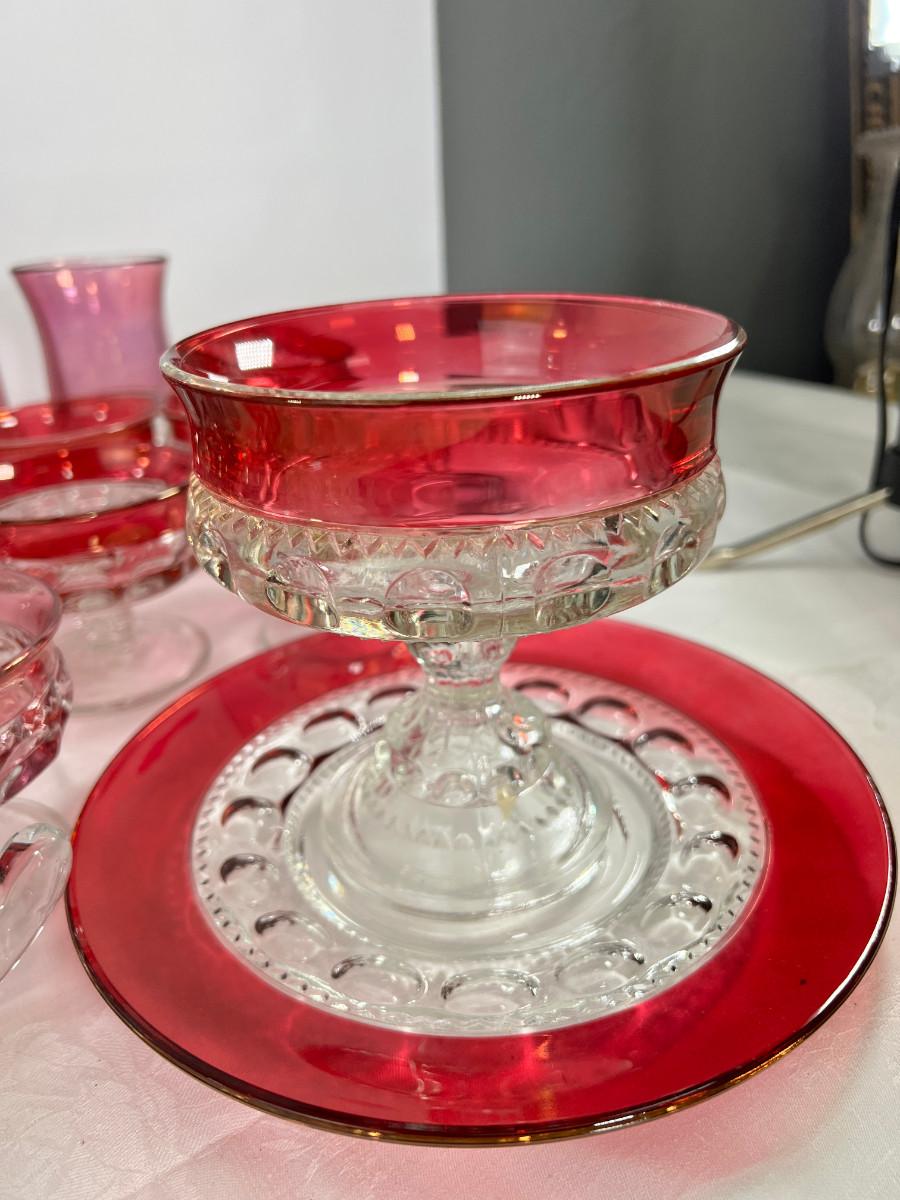 American thumb print cranberry glass, Fostoria Americana