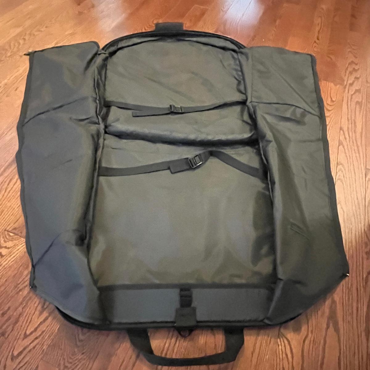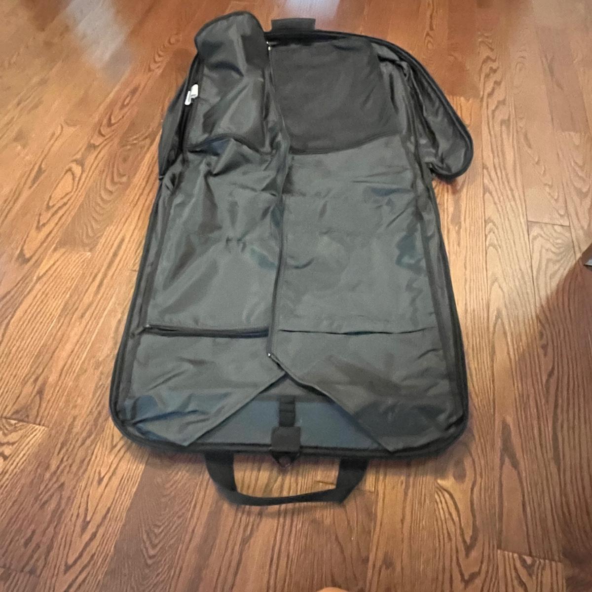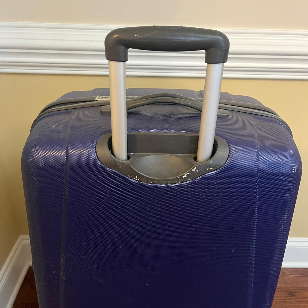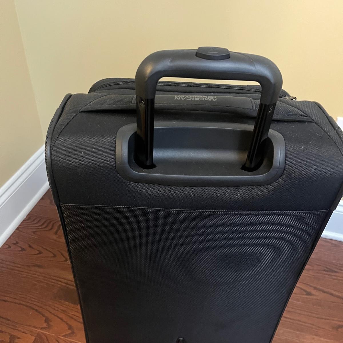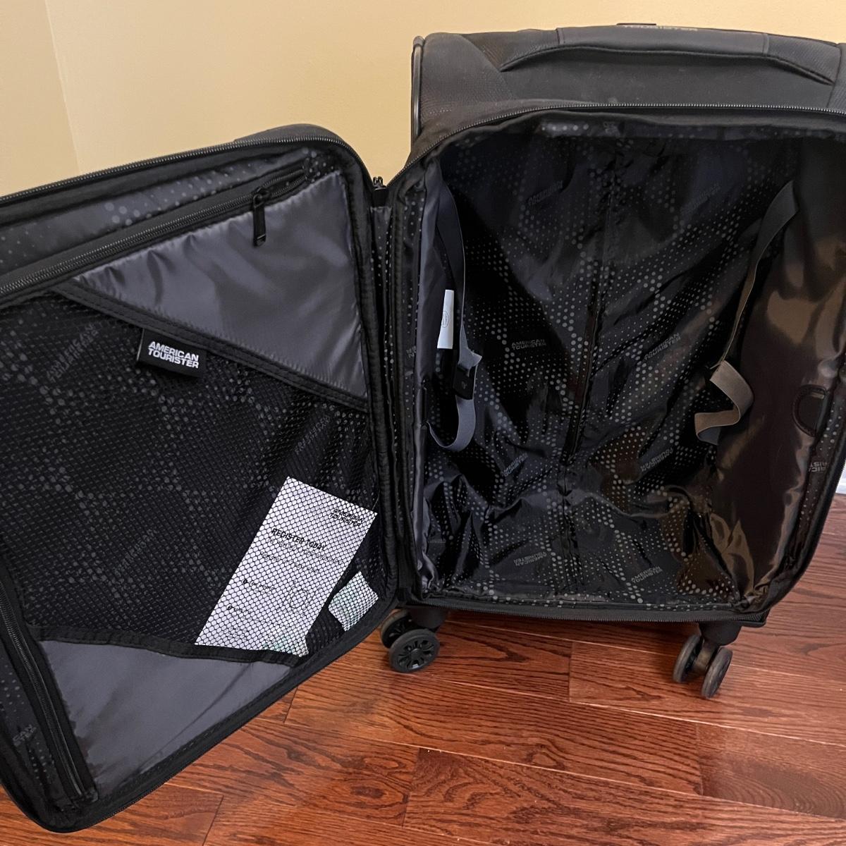 Lot includes a American Tourister soft sided wheeled bag that measures 14” x 9” x 23”H, Delsey hard sided wheeled luggage that measures 20” x 12” x 31”H, Ricardo soft sided wheeled bag that measures 13” x 8” x 20”H and a Amazon Basics garment bag.