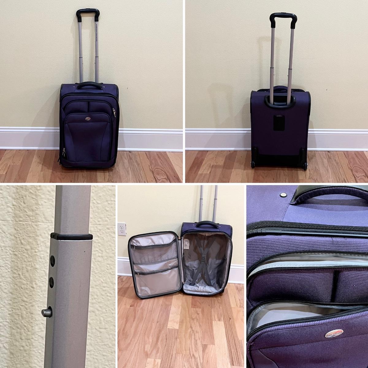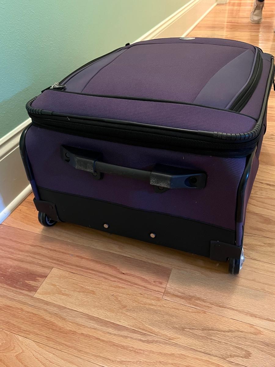 Luggage has 2 wheels ~ Includes = Smaller 22” H x 15” W x 12” D ~ Larger 25” H x 18” W x 13” D ~ Puple