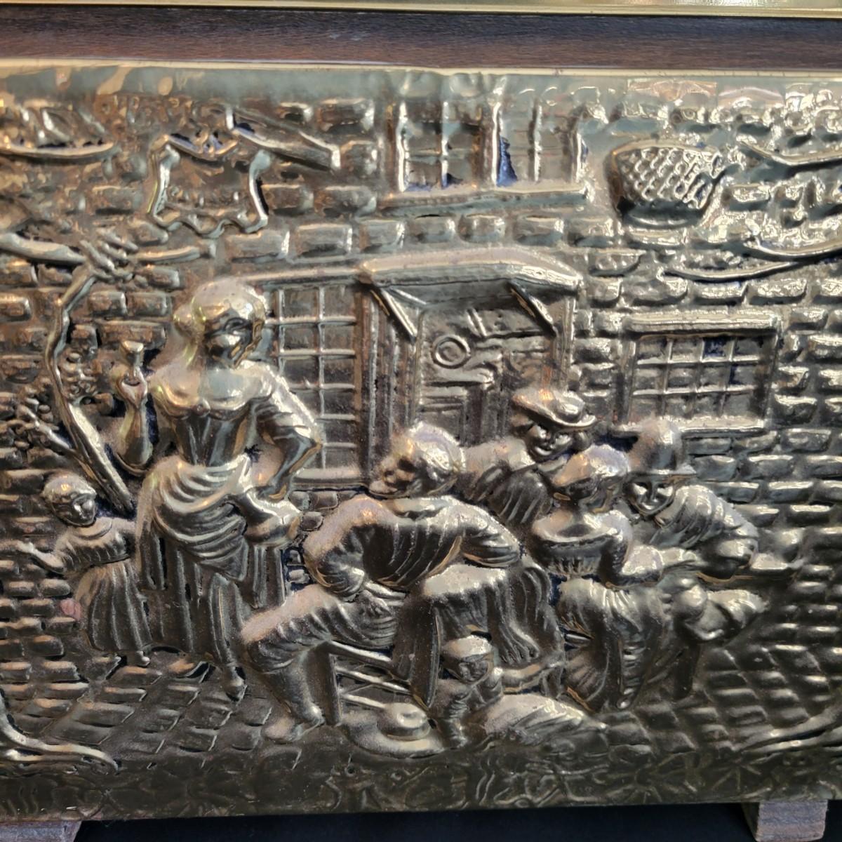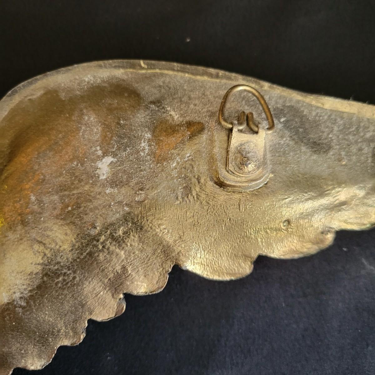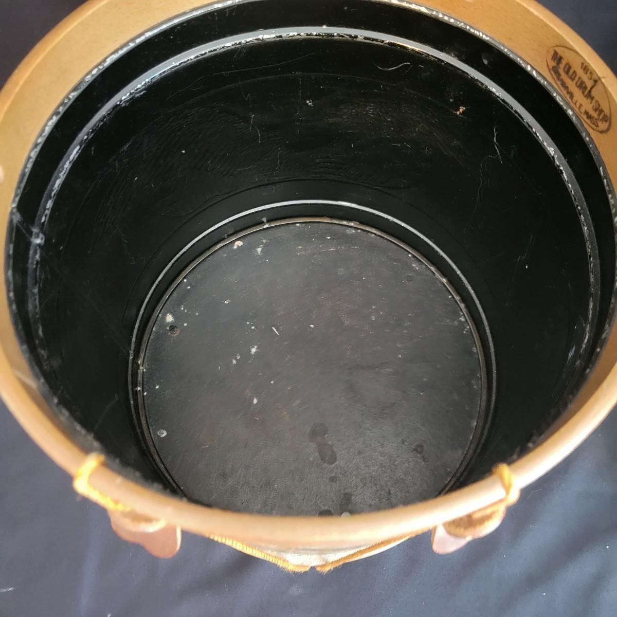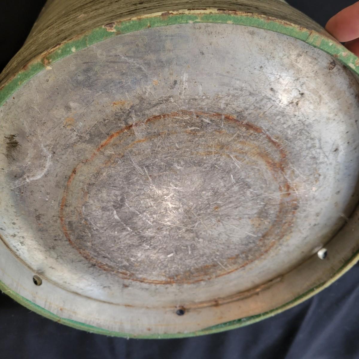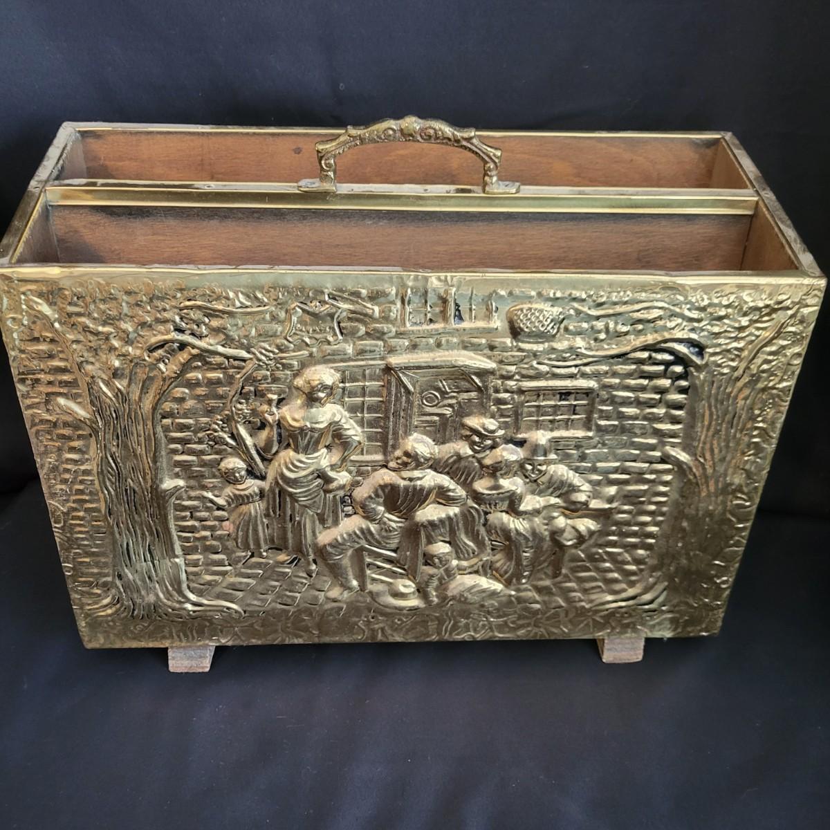 An assortment of four Americana decor items. Included is a brass eagle, a magazine rack with an embossed metal exterior, a waste bin modeled after a drum and a large metal milk jug. The milk jug measures approximately 12"D x 25"H and the lid did not come off. Local pickup only