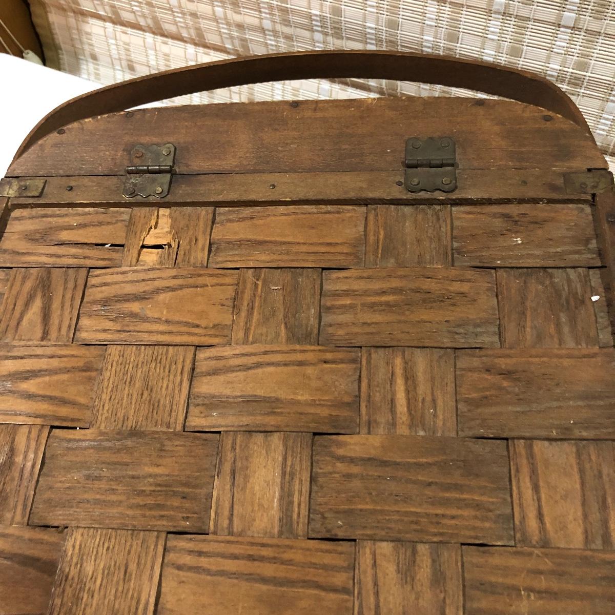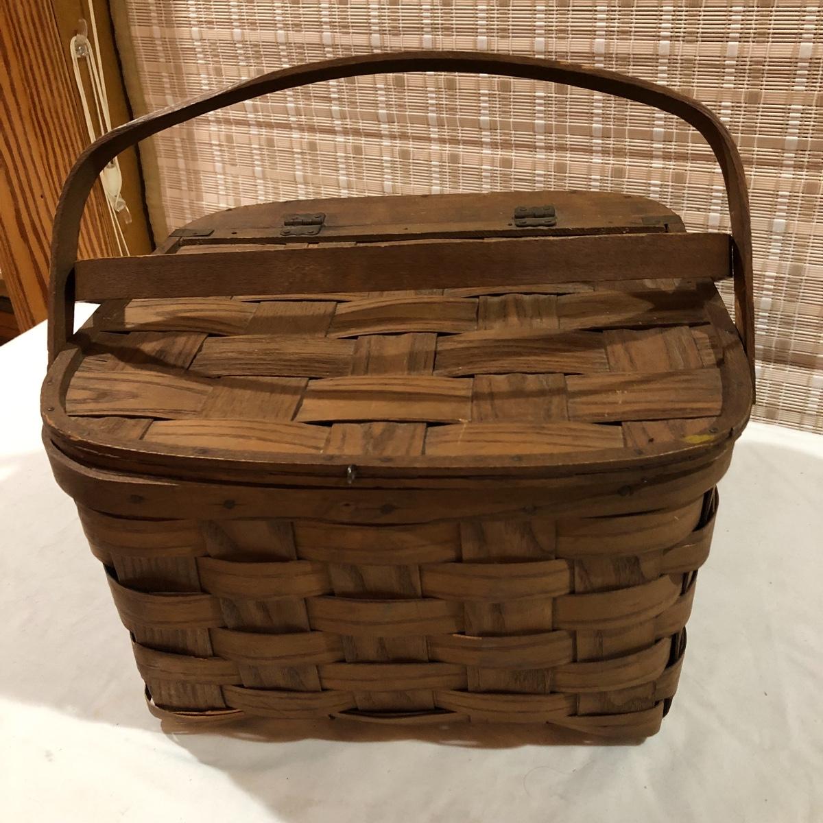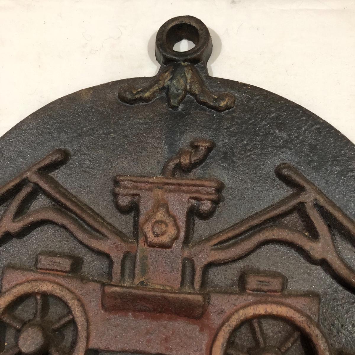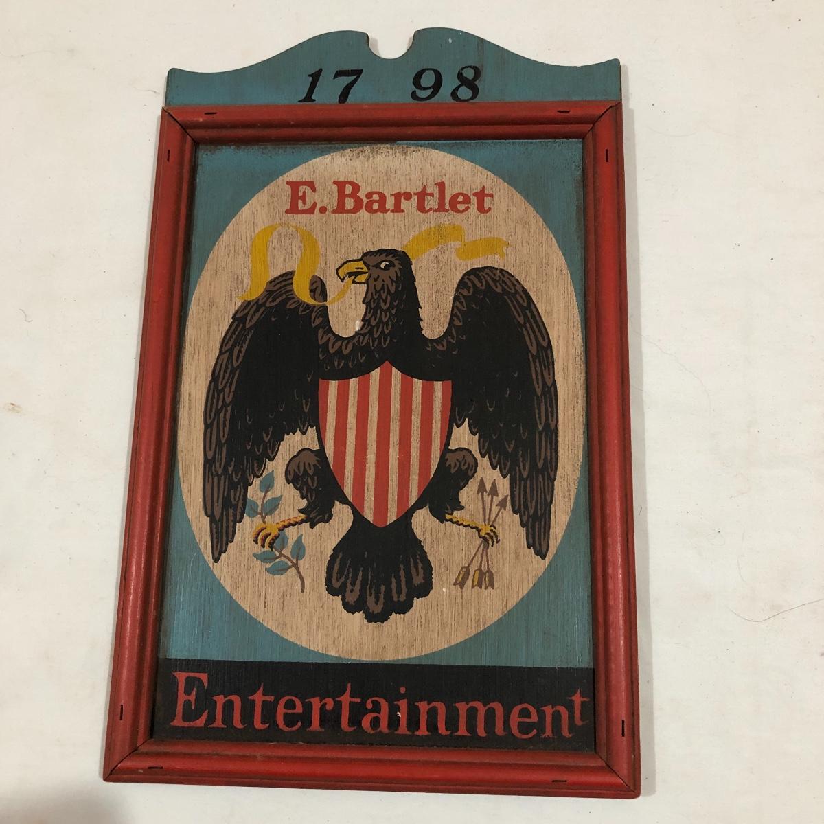 There are five items in this lot. The Fireman’s Insurance wall plaque is cast iron and measures almost 12” in diameter. The early American wooden flag has a stamp on the back that reads, “Cornwall Wood Products So. Paris, Maine.” It measures 15” x 10”. The hand painted shoe measures 21” x 6”. The 1798 wall plaque measures 7.5” x 12”. The pie basket comes with an insert and measures 13.5” x 13” x 8”. Please note the two places where the weaving is broke. Local pick up only.