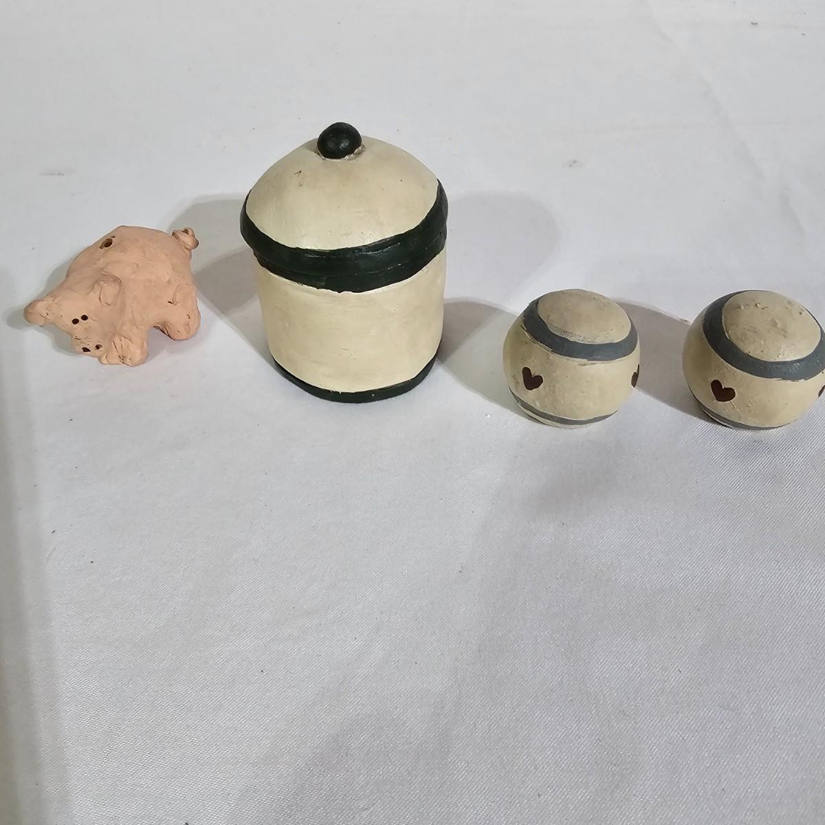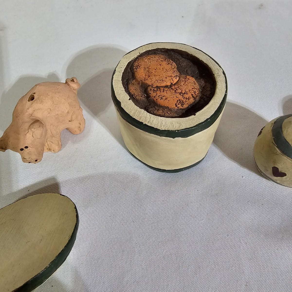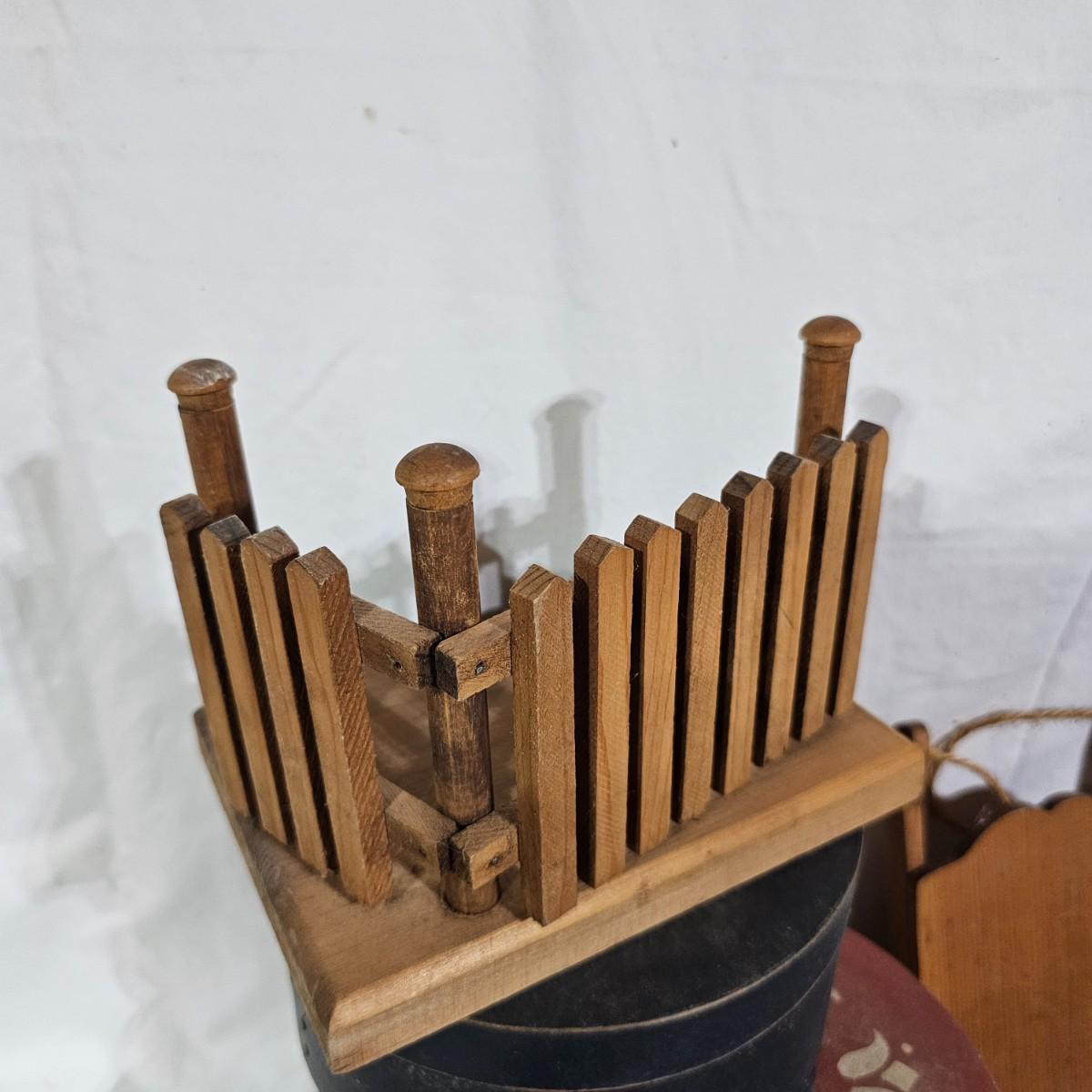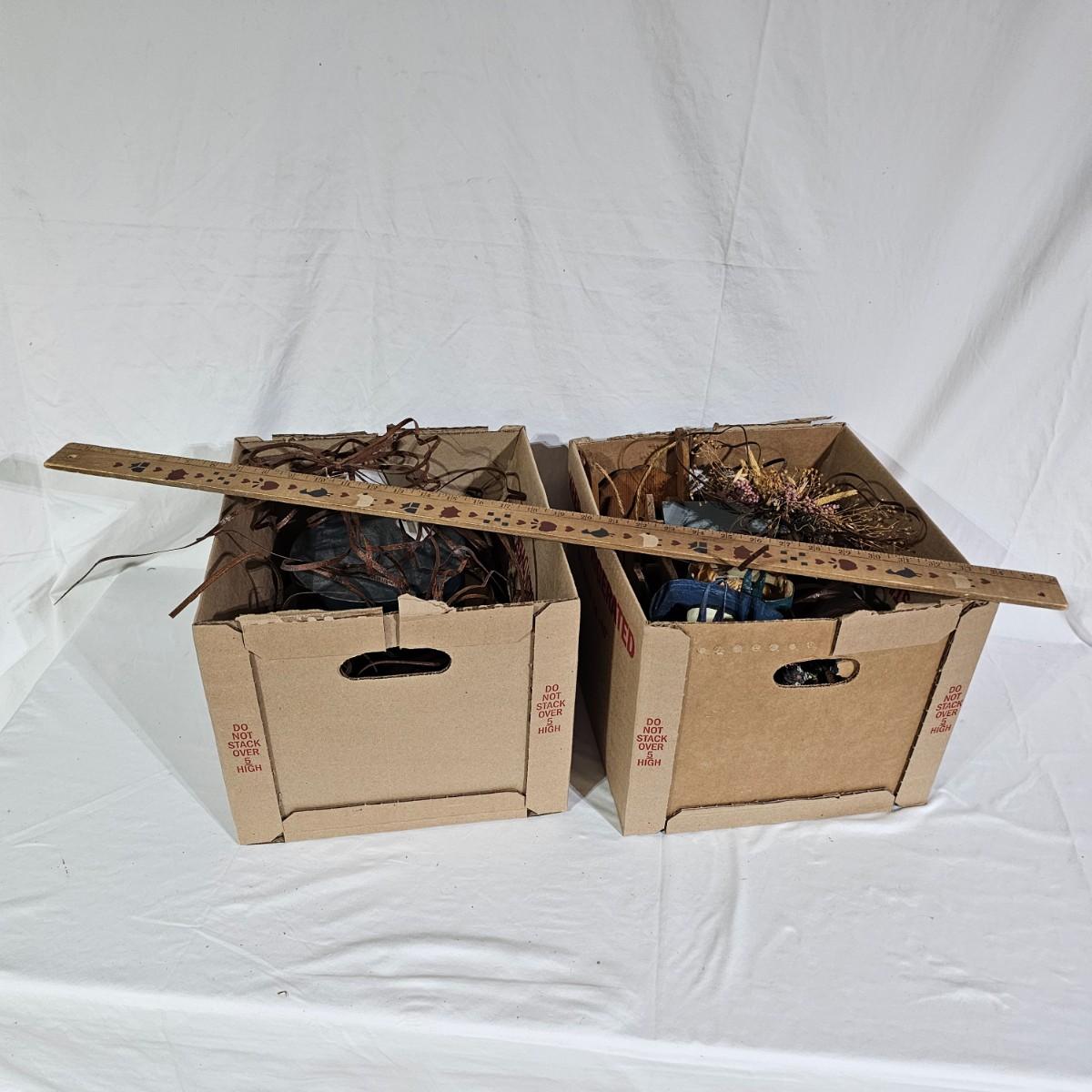 Whimsy figures, benches, wire bows, more. Four rusty metal bows with decoration, small benches with sitting figures, three wood painted cheese boxes. Many items are from Sarah's Attic, are cast resin and wood. See photos for details. Shipping available.