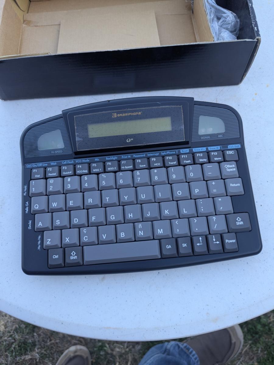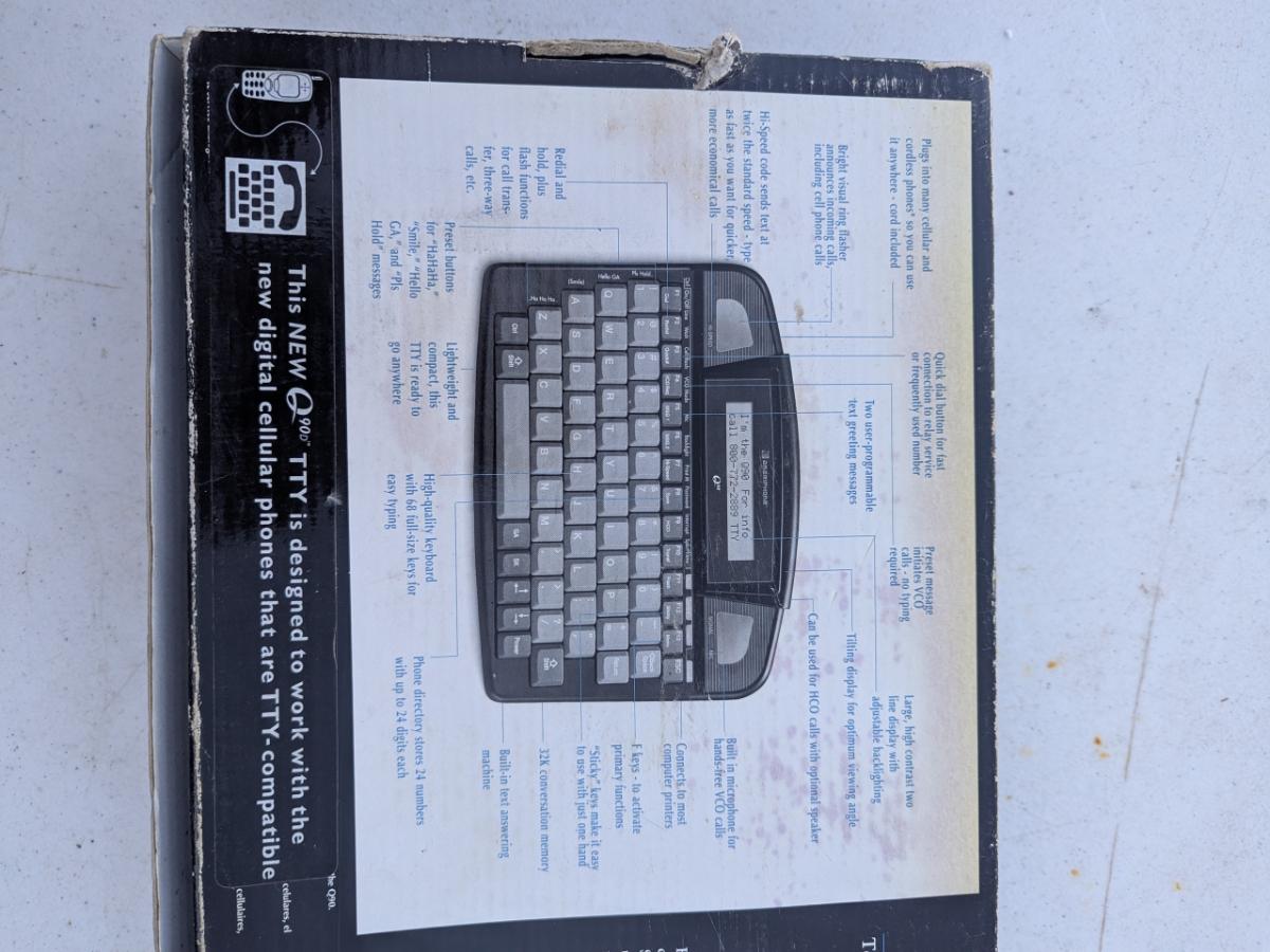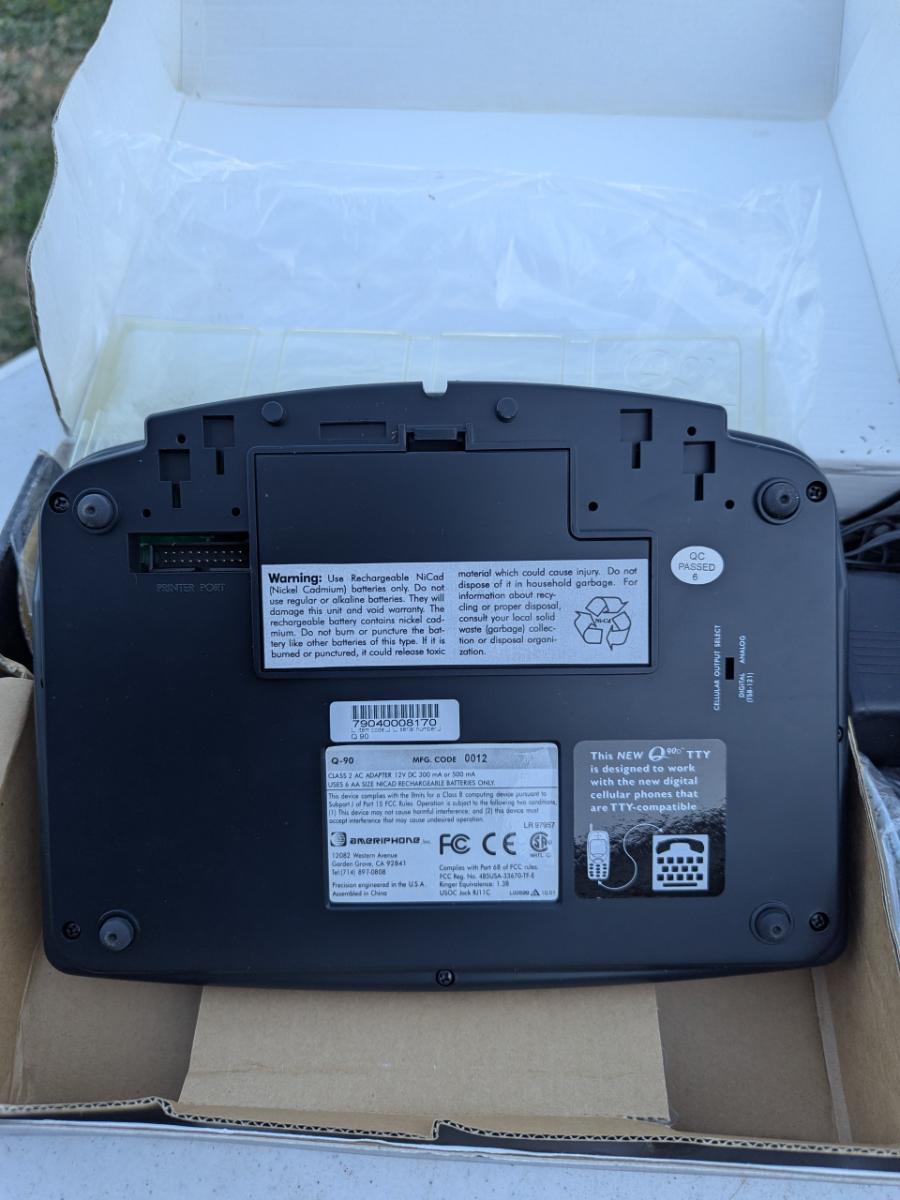 Ameriphone Q90D Digital TTY/VCO device, a portable text telephone designed for individuals who are deaf, hard-of-hearing, or speech-impaired