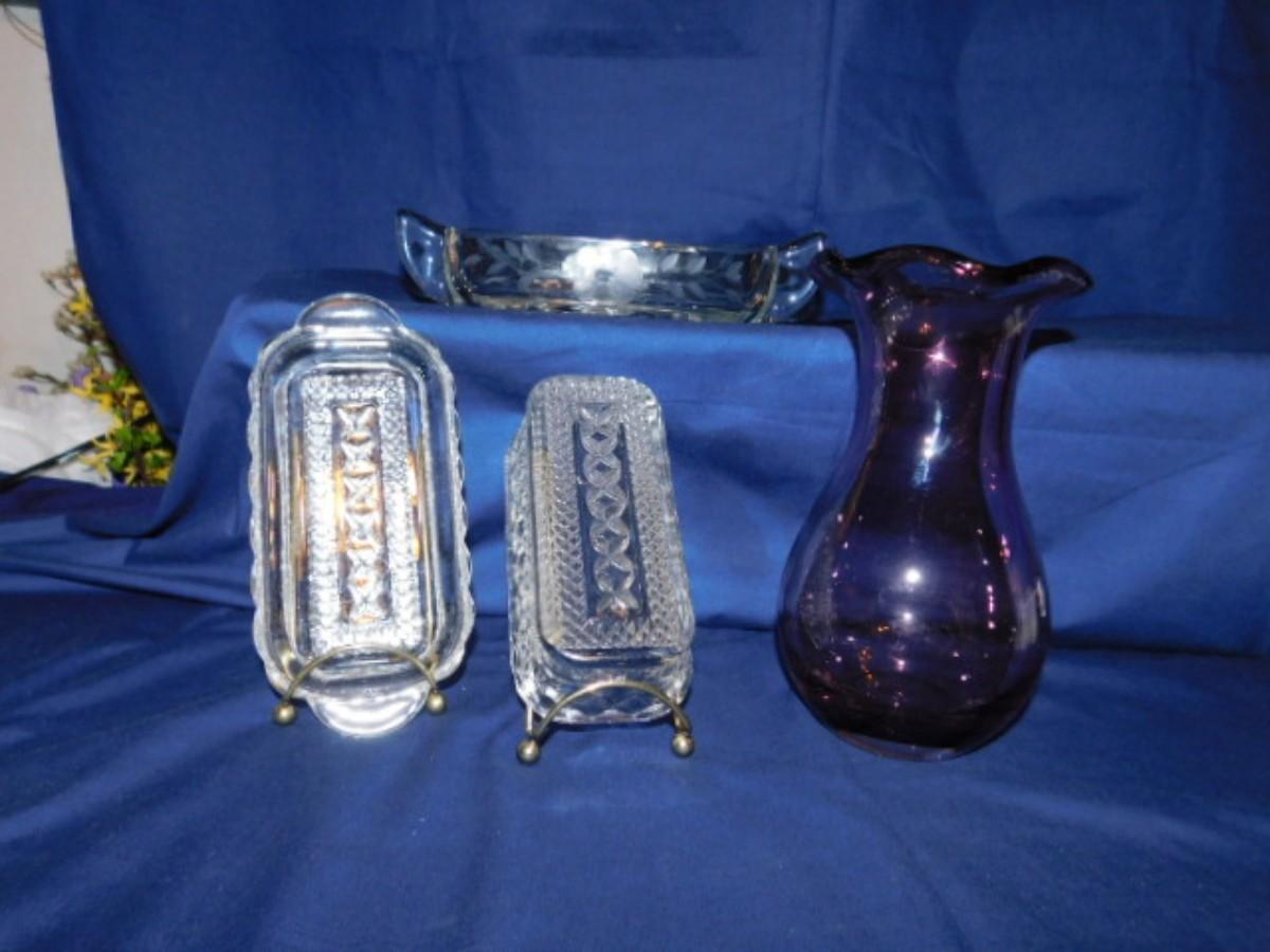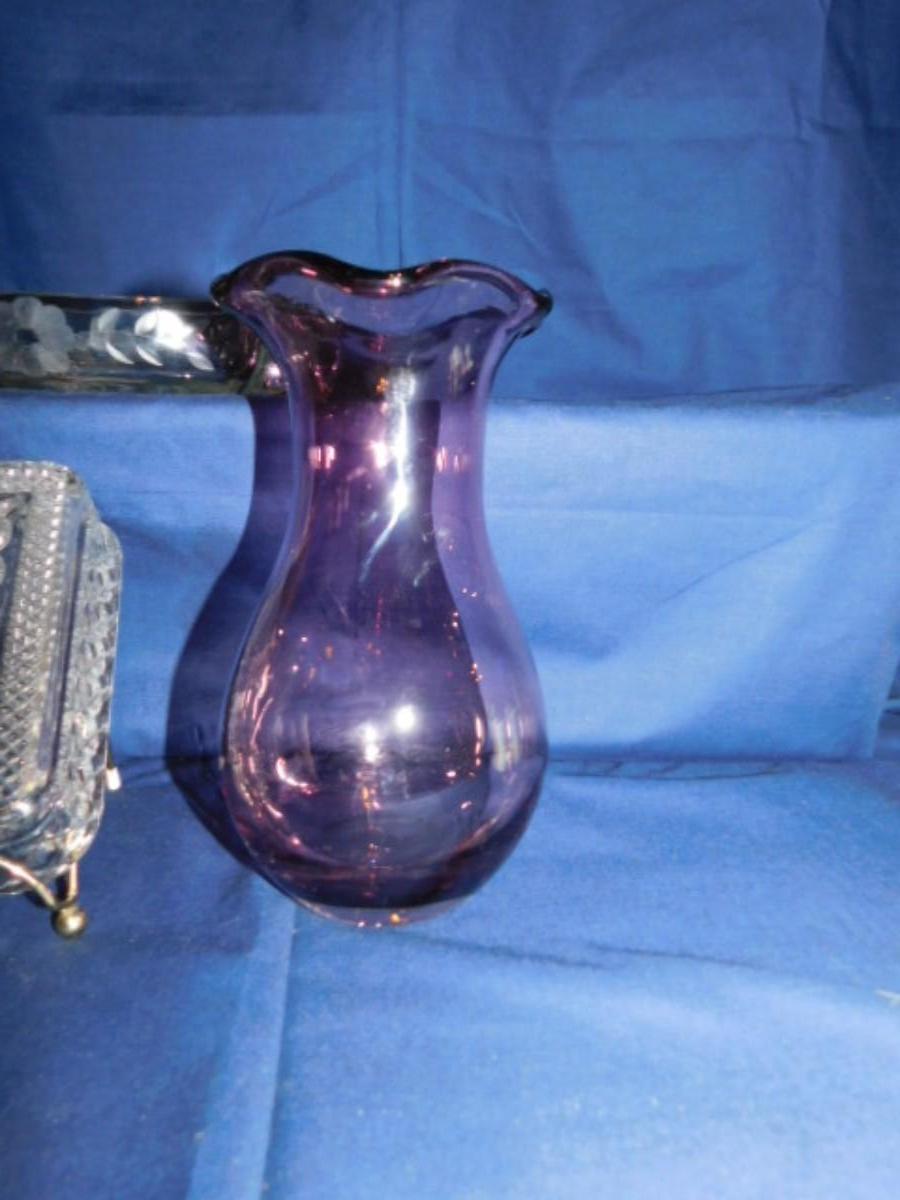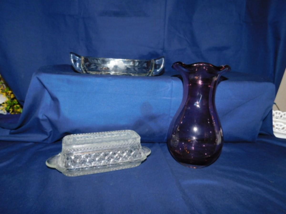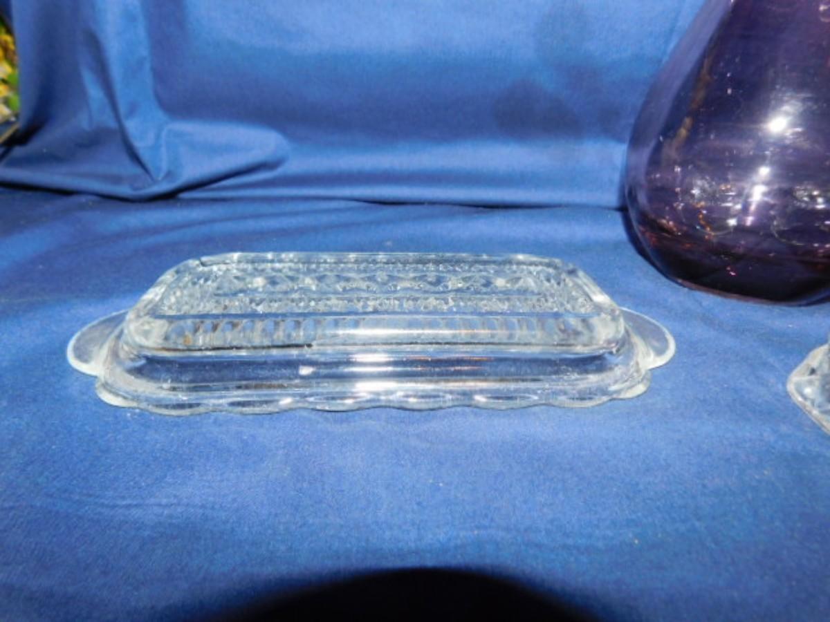 AMETHYST 9" FENTON? VASE, BUTTER DISH AND MORE