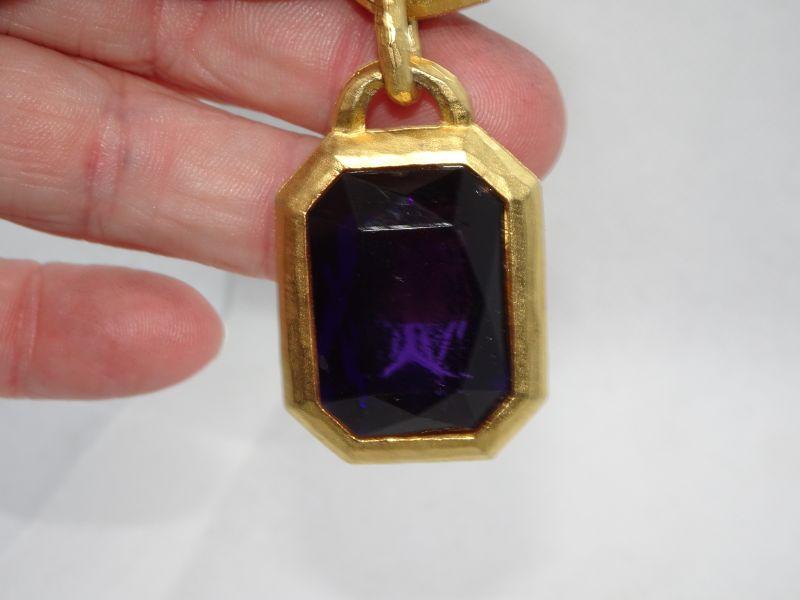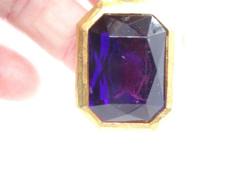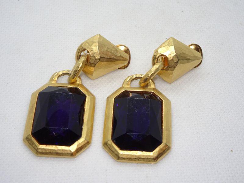 Amethyst Colored Gold Tone Dangle Clip Earrings