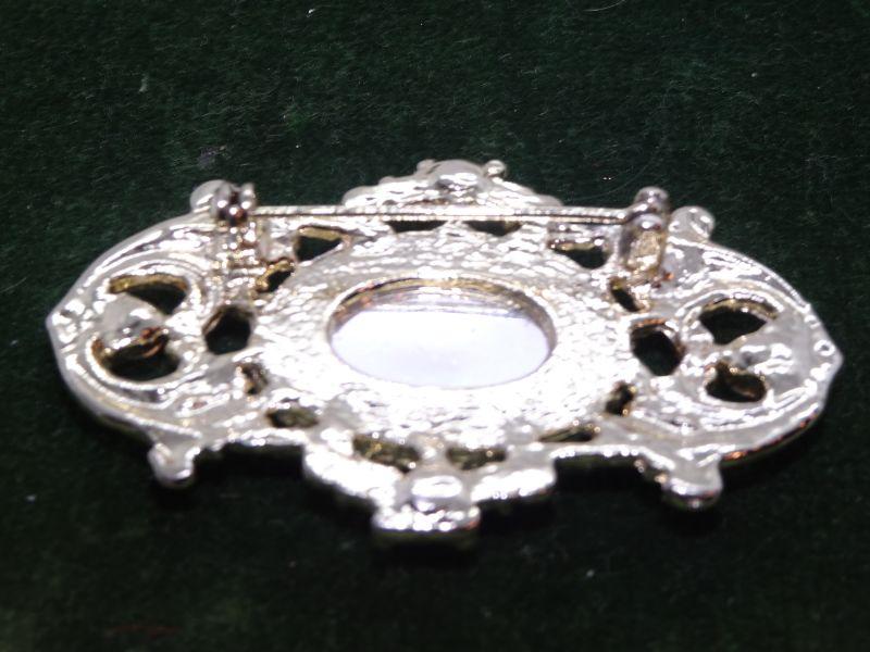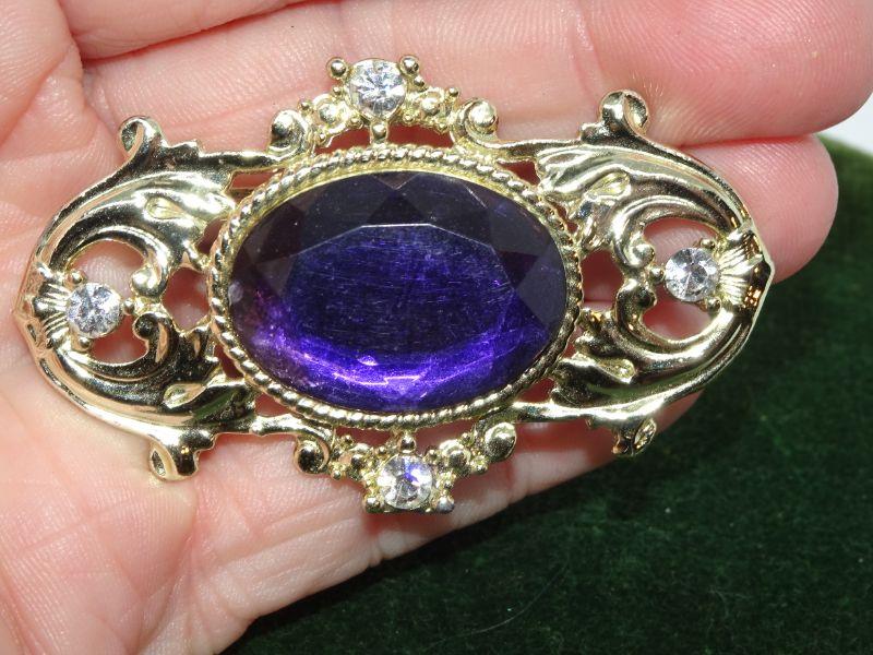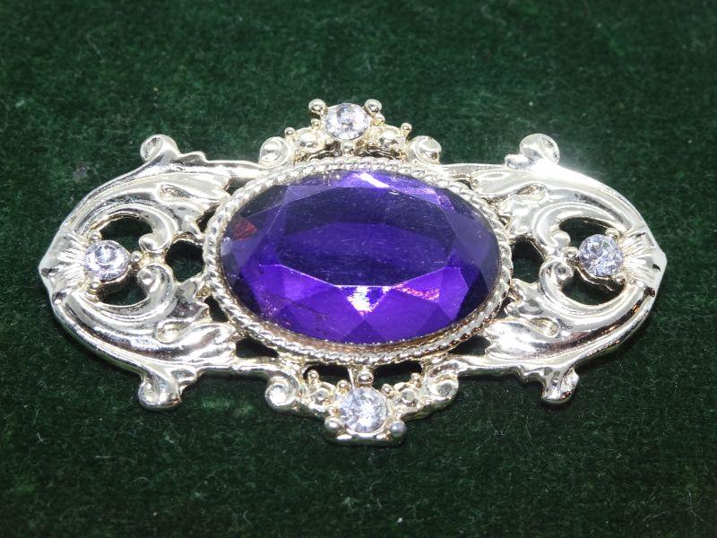 Amethyst Colored Silver Tone Victorian Style Brooch
