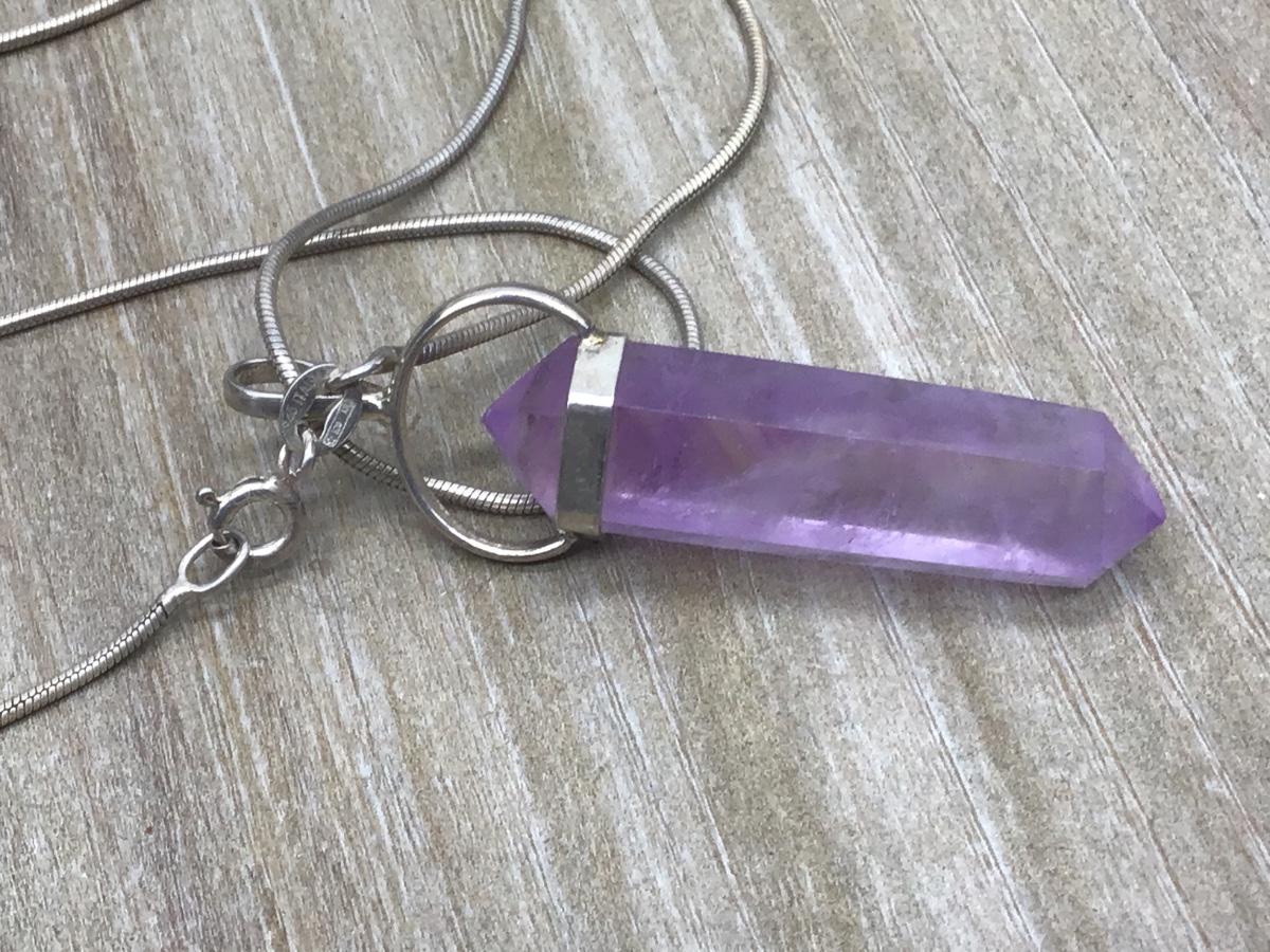 Amethyst Hexagon Point 925 Pendant Italian 925 box chain