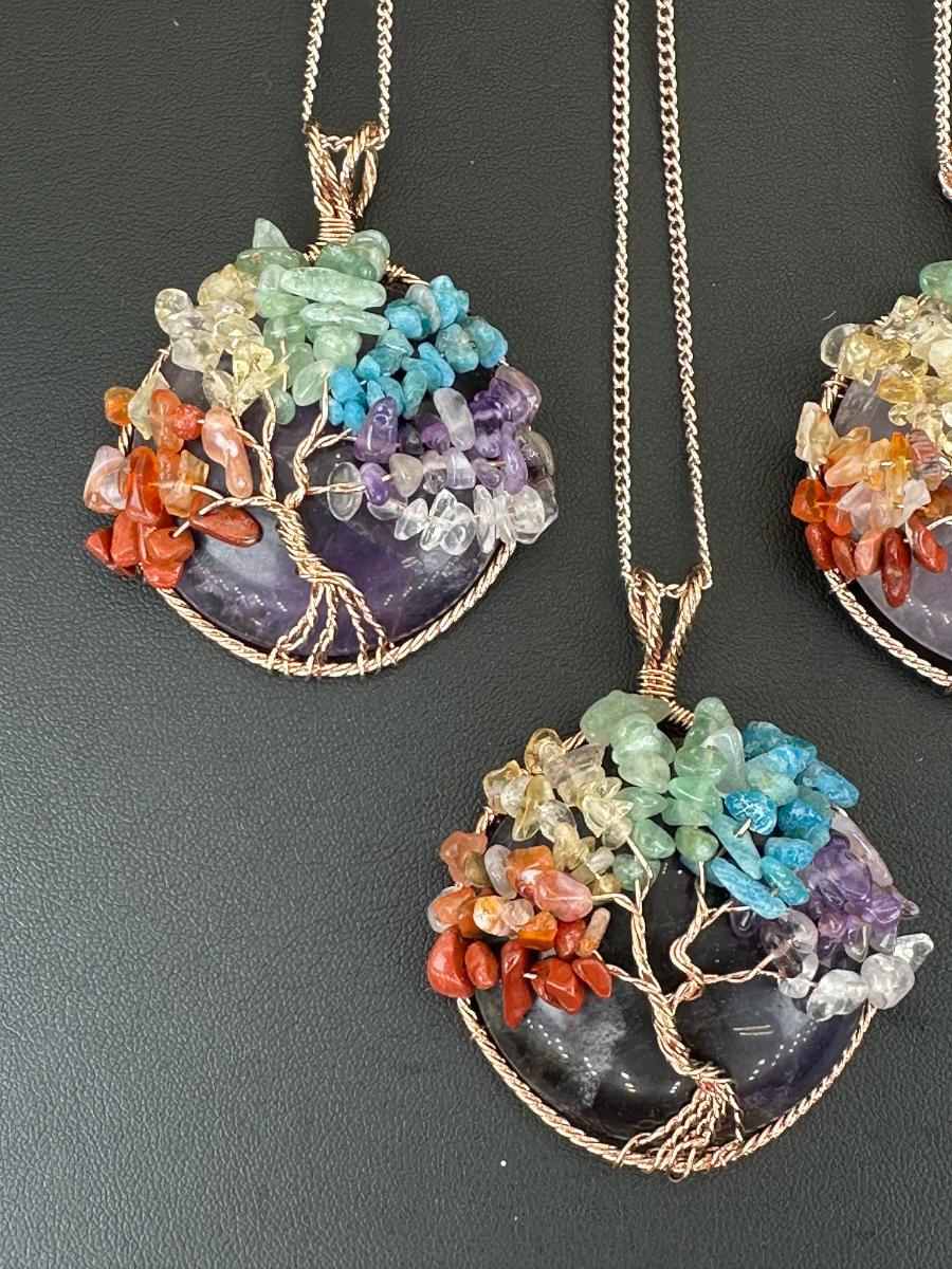 1. Amethyst Mix Gemstone Tree Of Life Necklace Lot