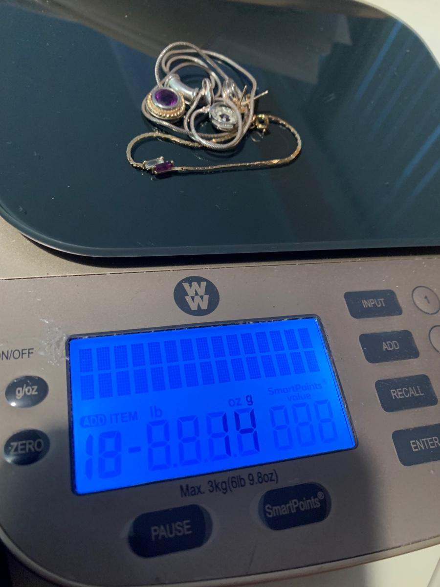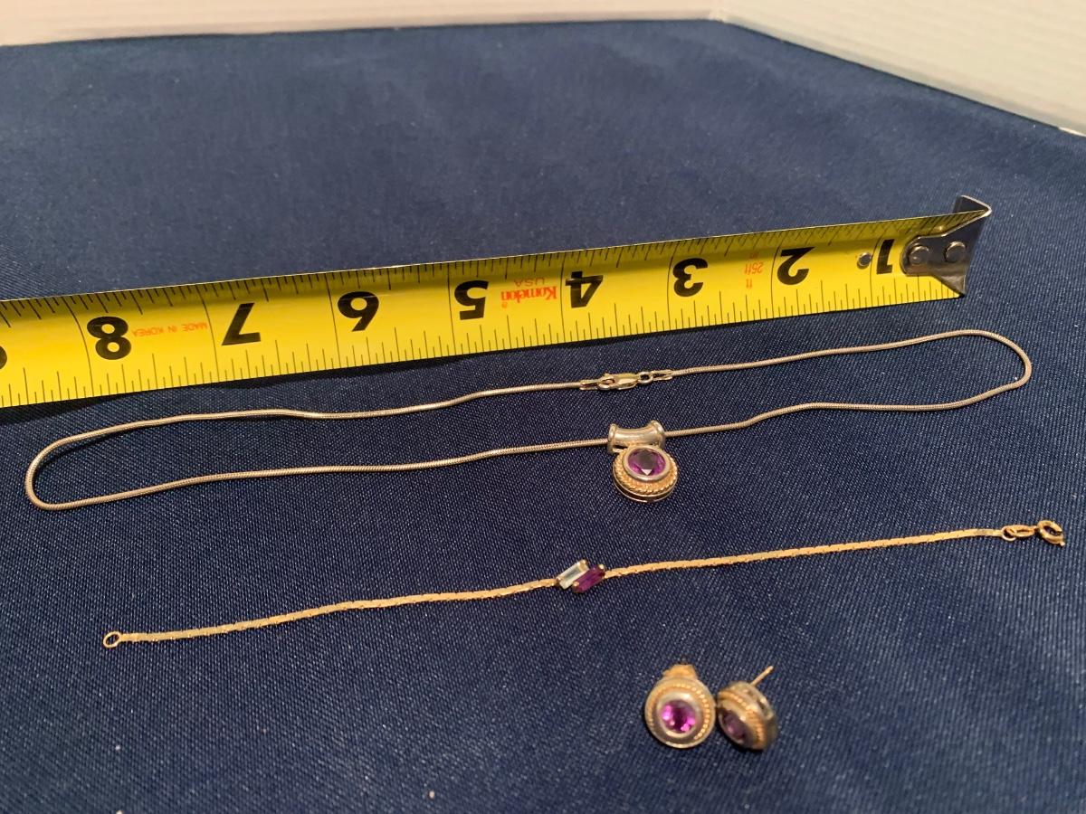 See all photos - bracelet tested fine at 14k and weighs approx. 1gram - Necklace and earrings did not test well.