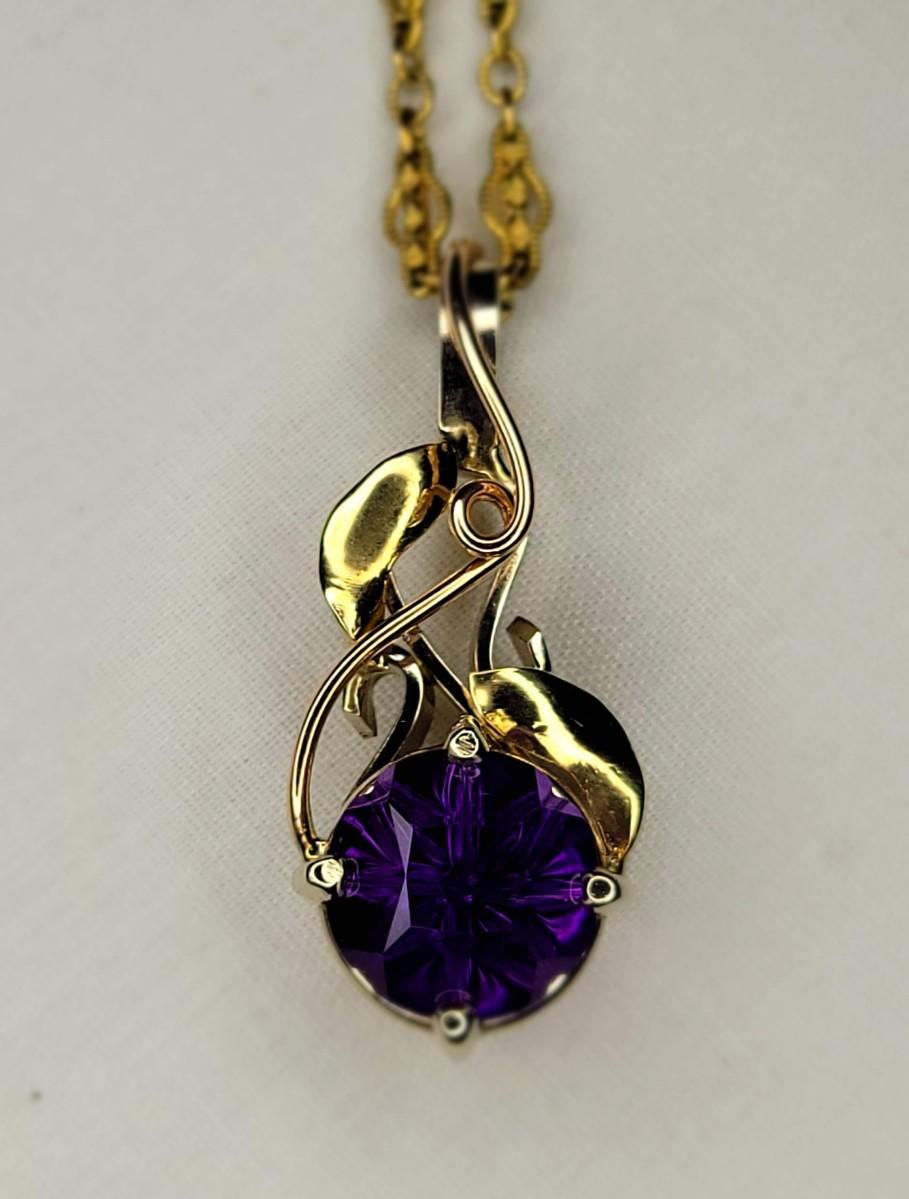 14K yellow gold with 6Ct. amethyst stone on 19" GF chain (clasp only 14K)