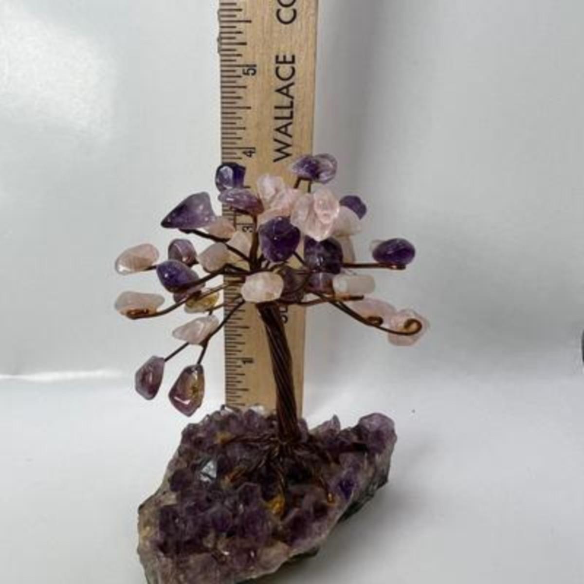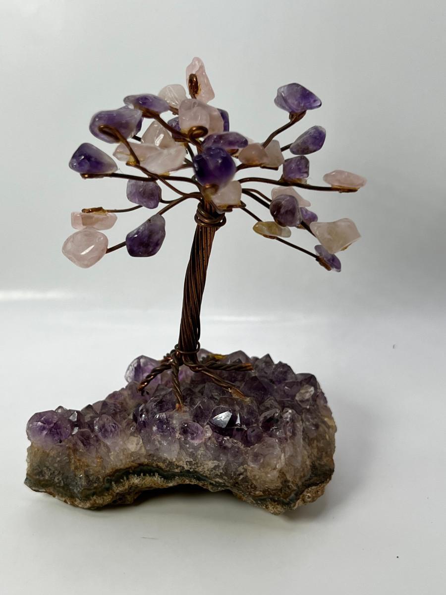 Amethyst Rose Quarts Tree wired on narural Crystal 4"