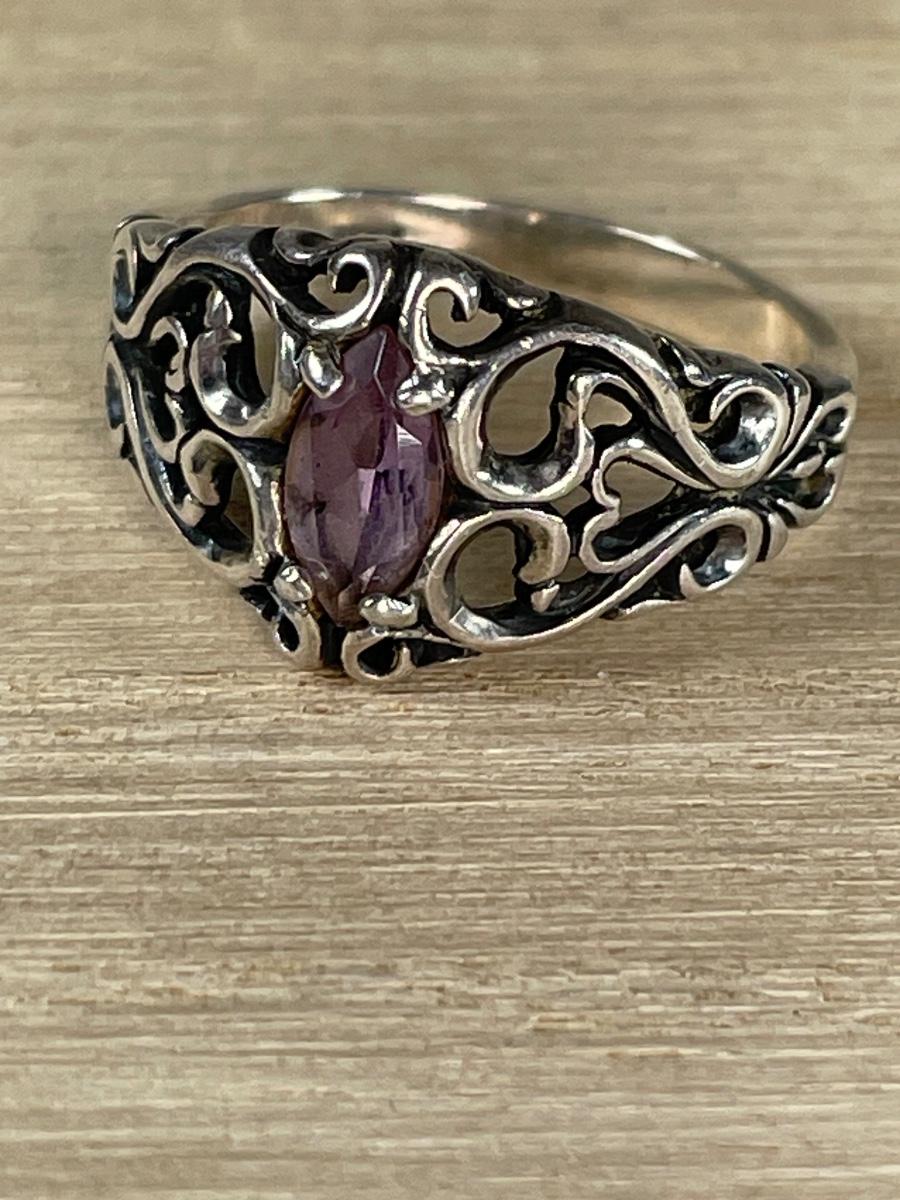 Amethyst Sterling silver filigree Ring 7