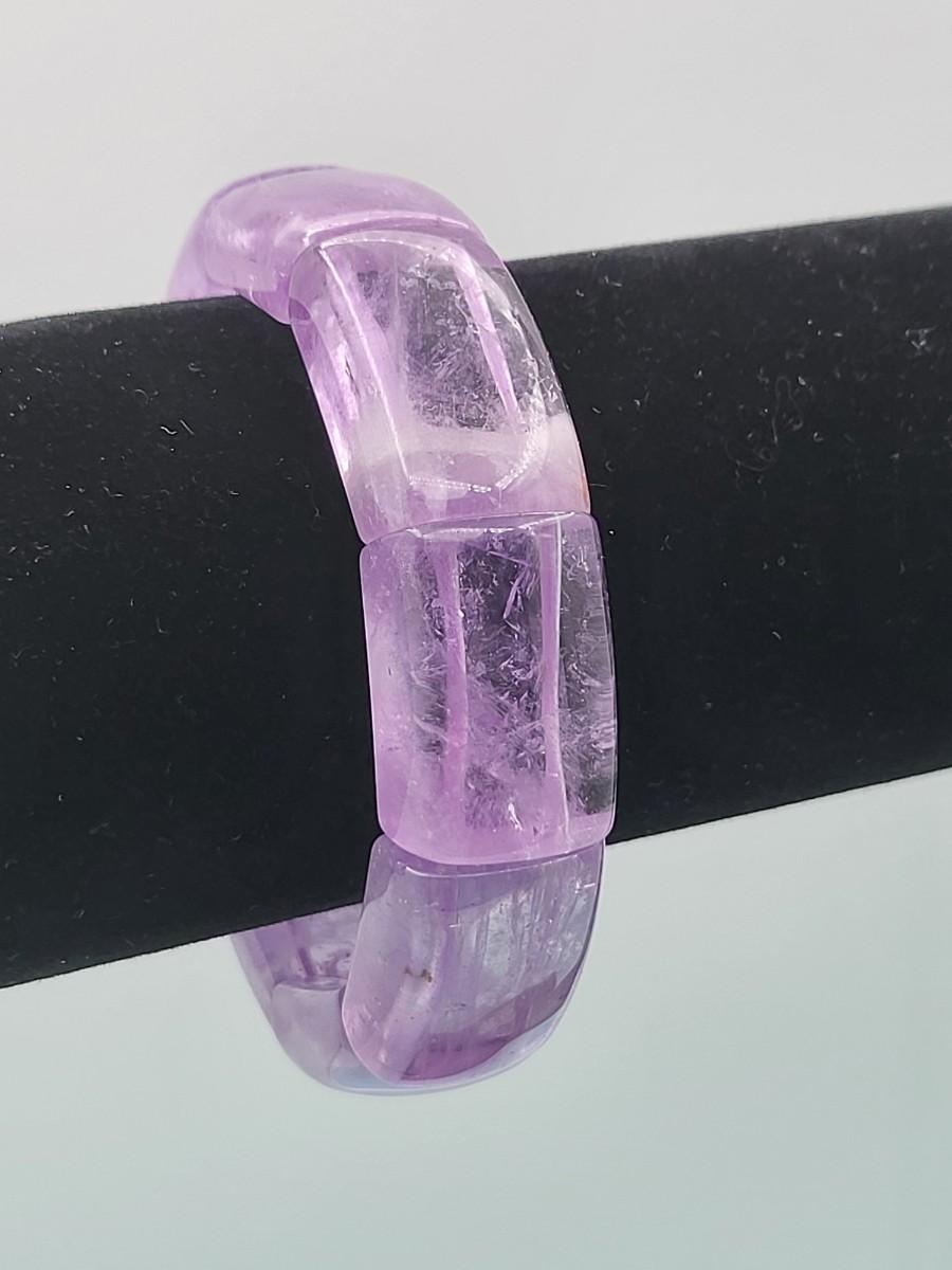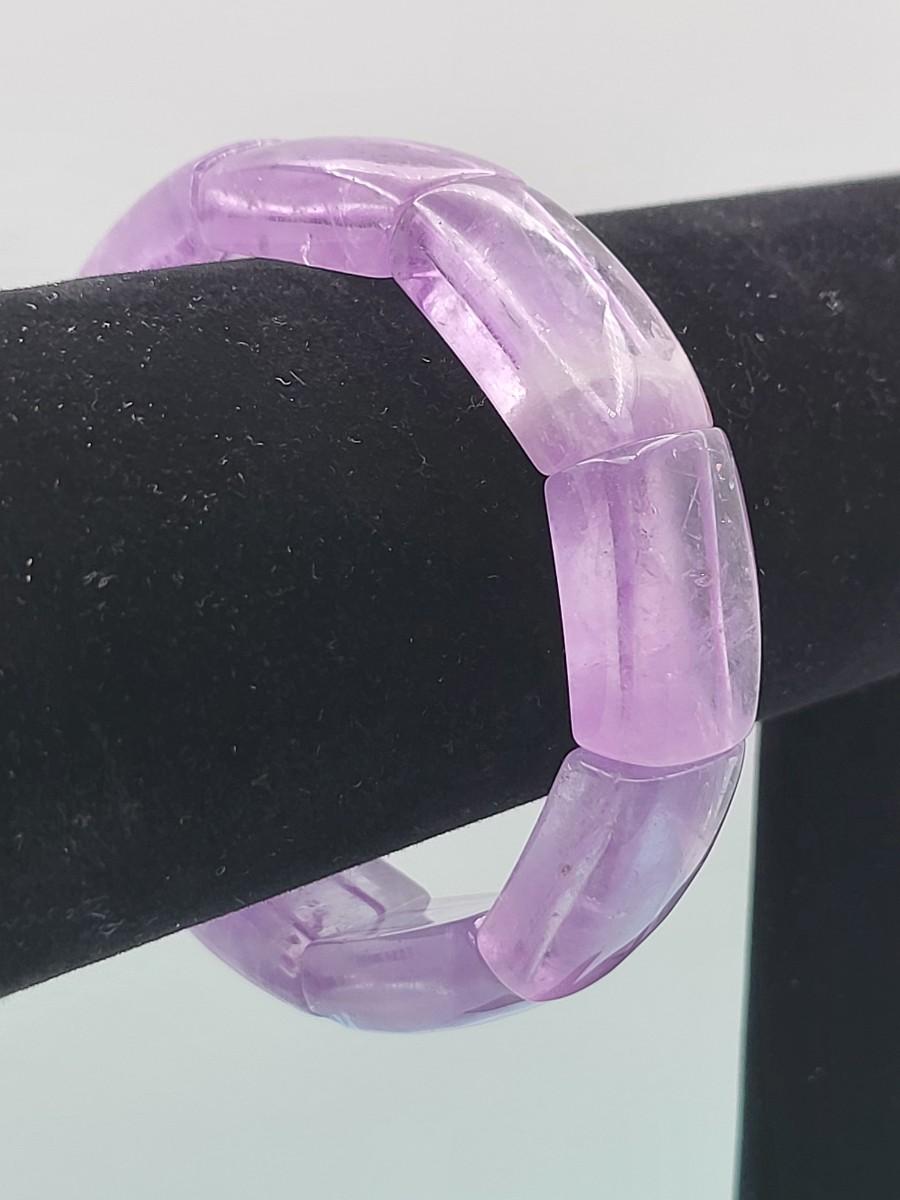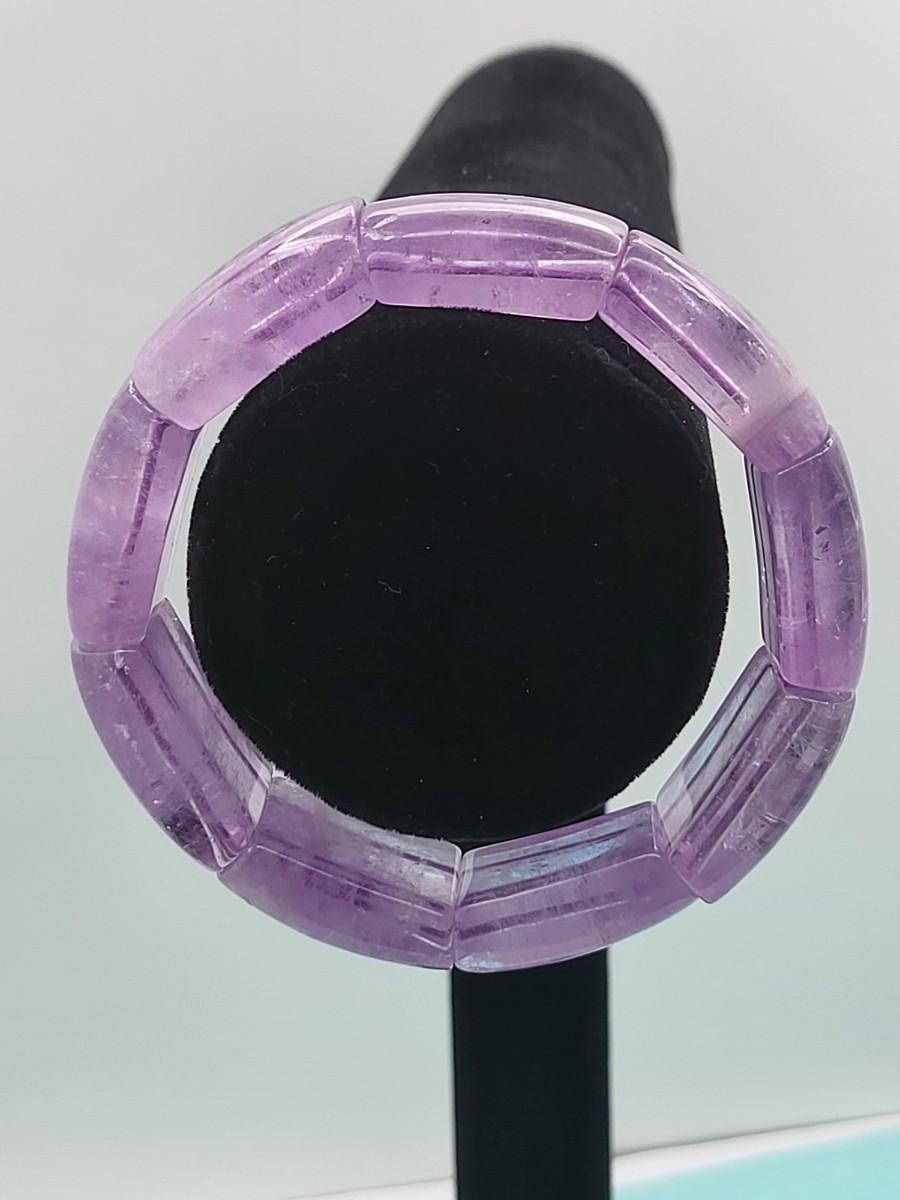 Lavender amethyst stretch bracelet, nine 1" x .75" each section. It is .75" wide.
