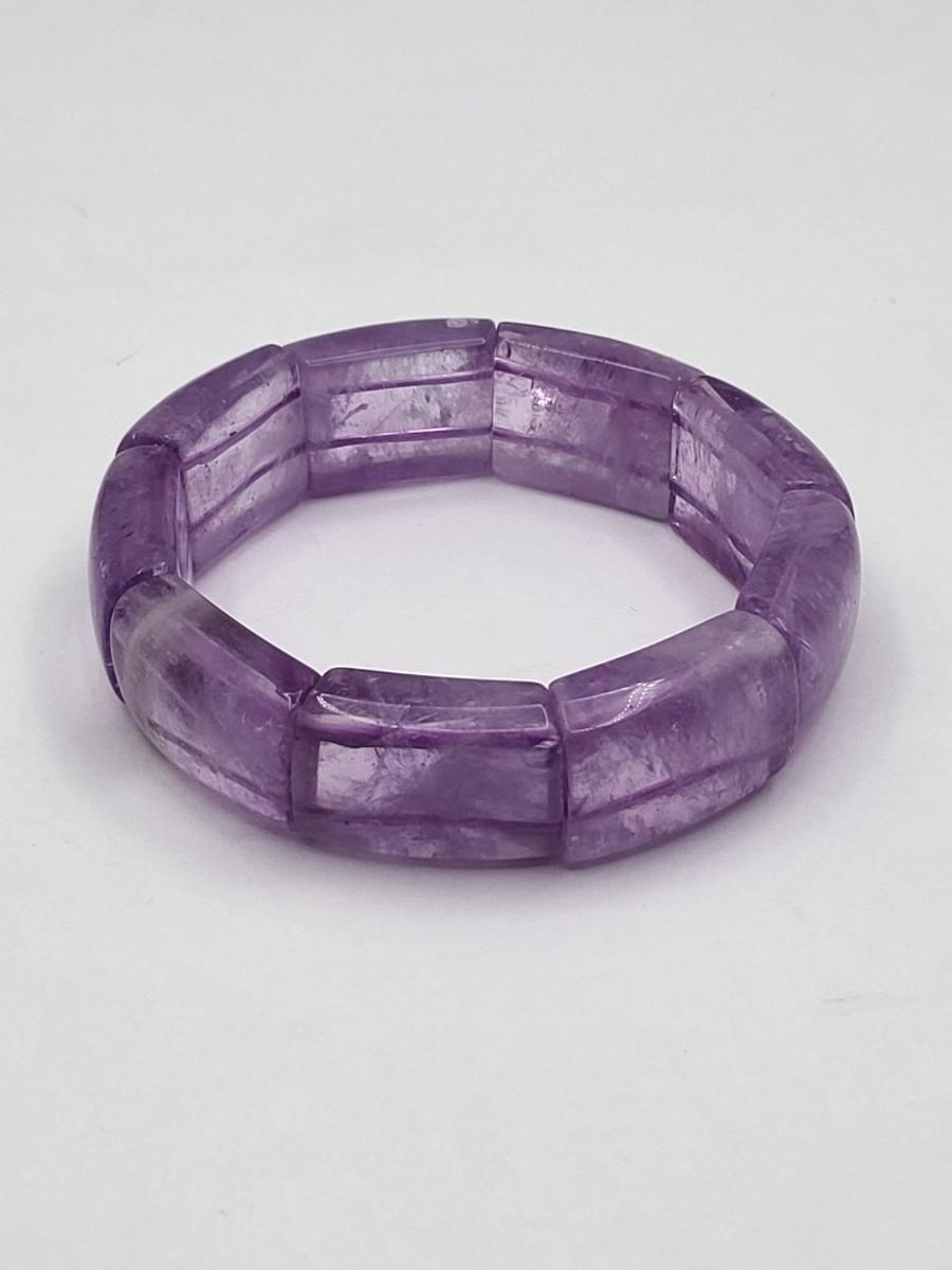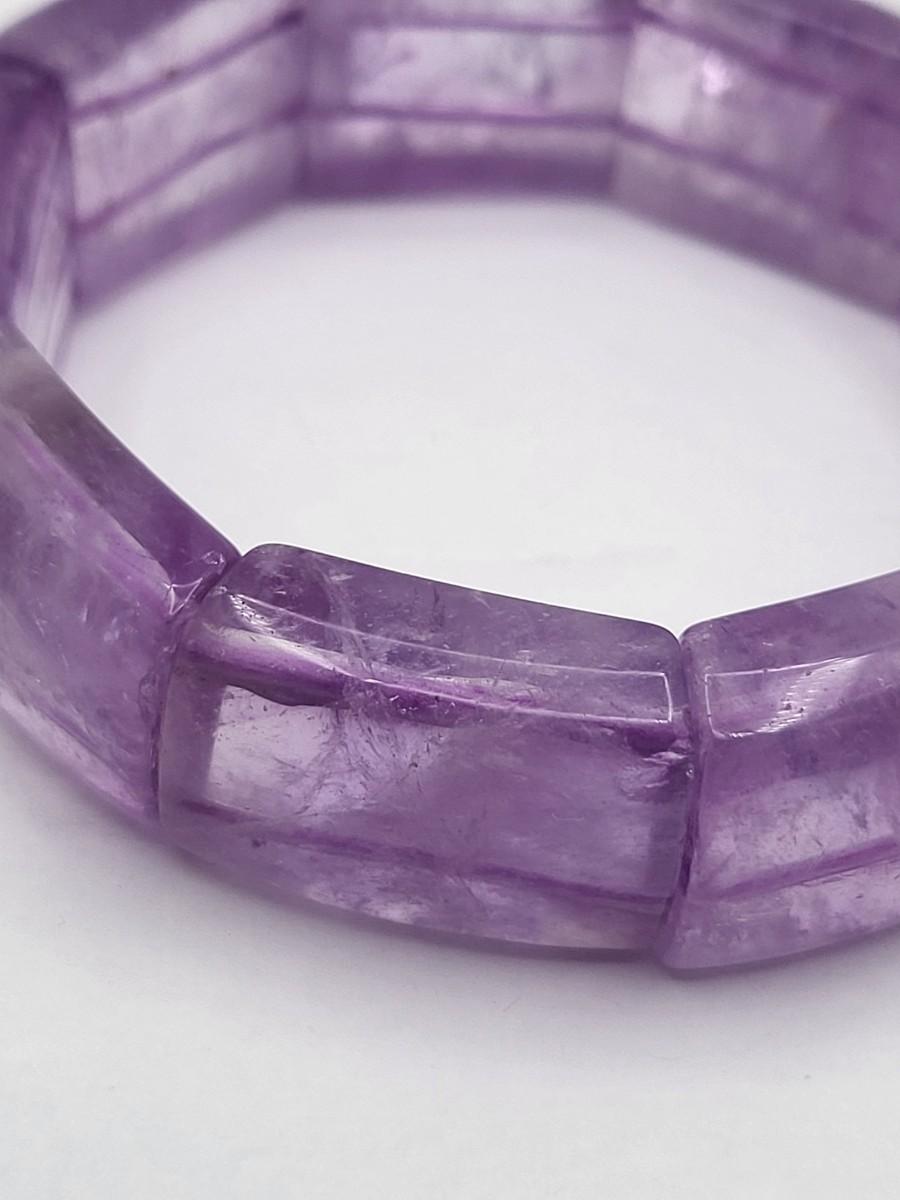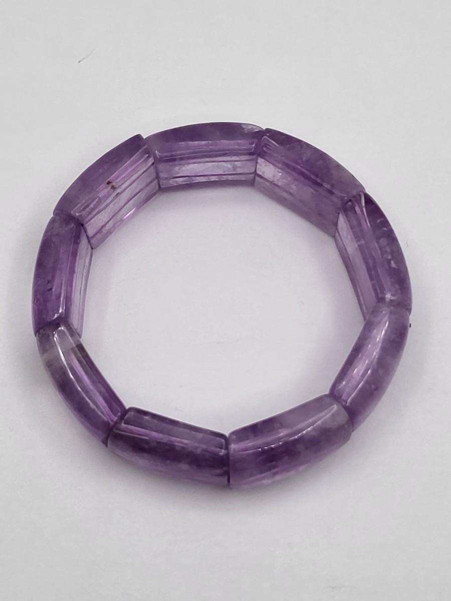 Lavender amethyst stretch bracelet, nine 1" x .75" each section. It is .75" wide.