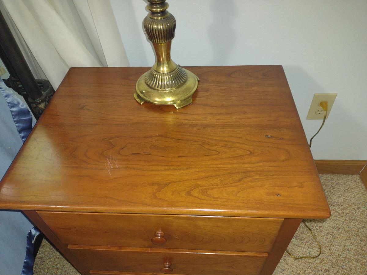 Amish Country Cherry Three Drawer Side Table- Approx 24" x 17" x 26" Tall (Choice A- Right). Please see all pictures for condition of finish.