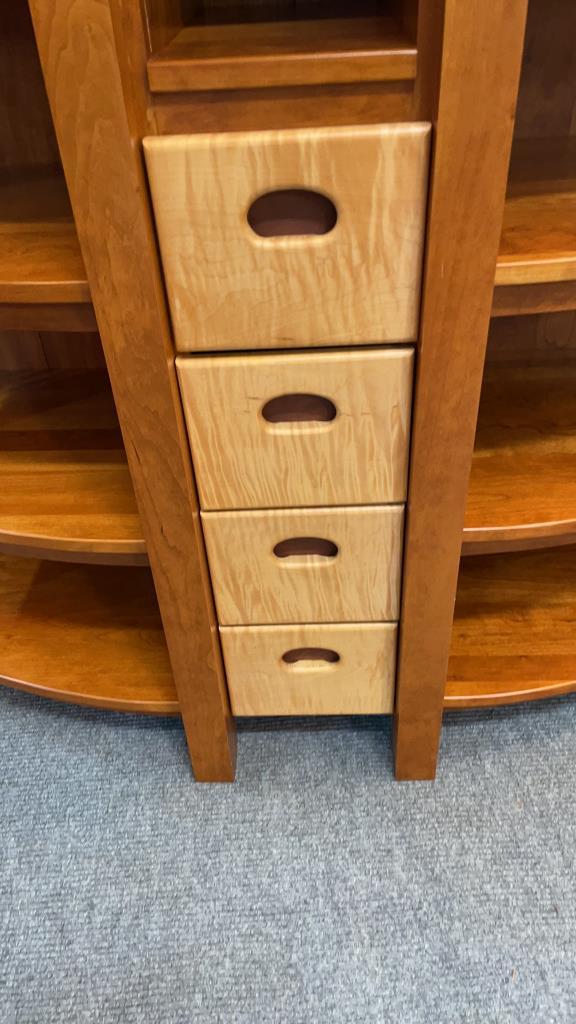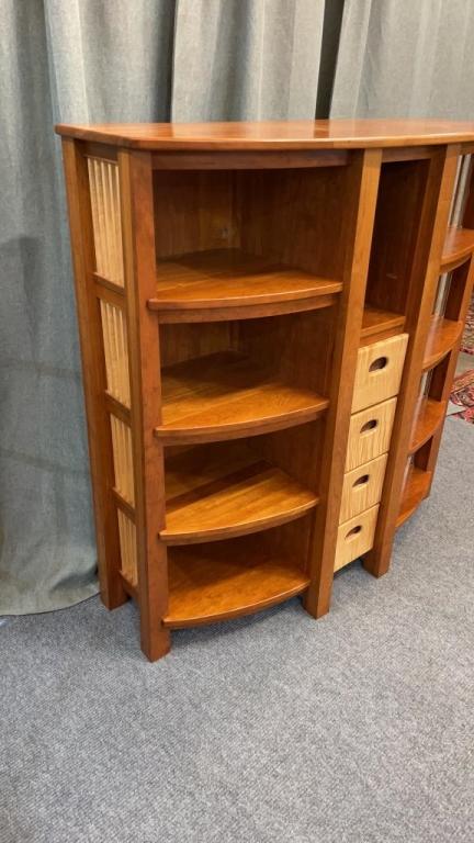 3 center drawer flanked by open shelves, 48 tall x 45.5 wide x 17 deep