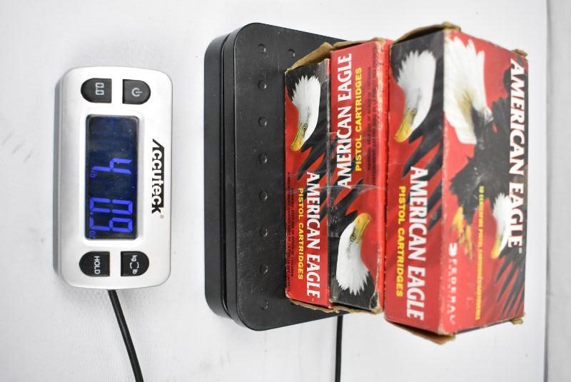 American Eagle boxxes are 9mm Luger, 115 grain full metal jacket, 145 count total