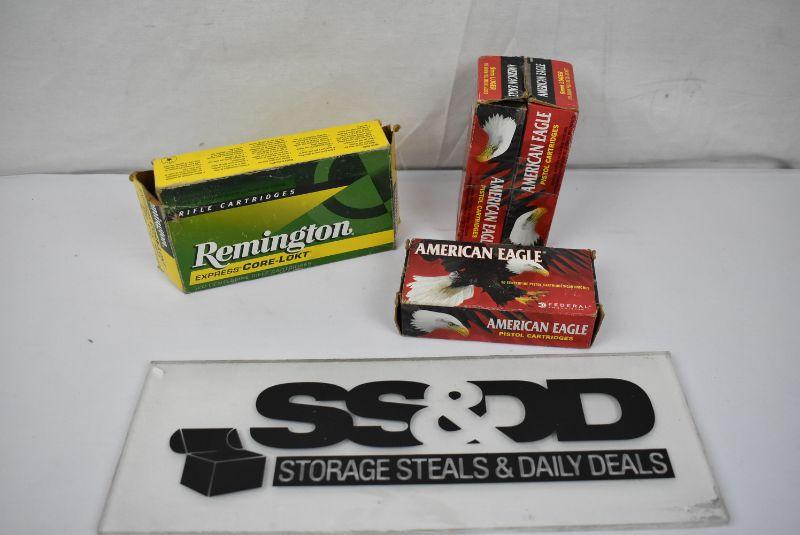 4 Boxes Cartridges: 1 Box Remington Rifle Cartridges & 3 Boxes American Eagle Pistol Cartridges