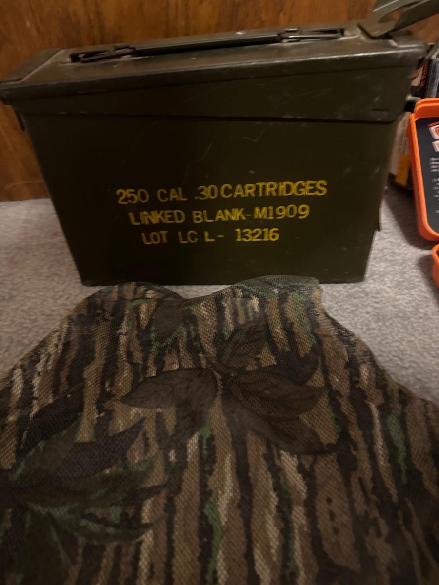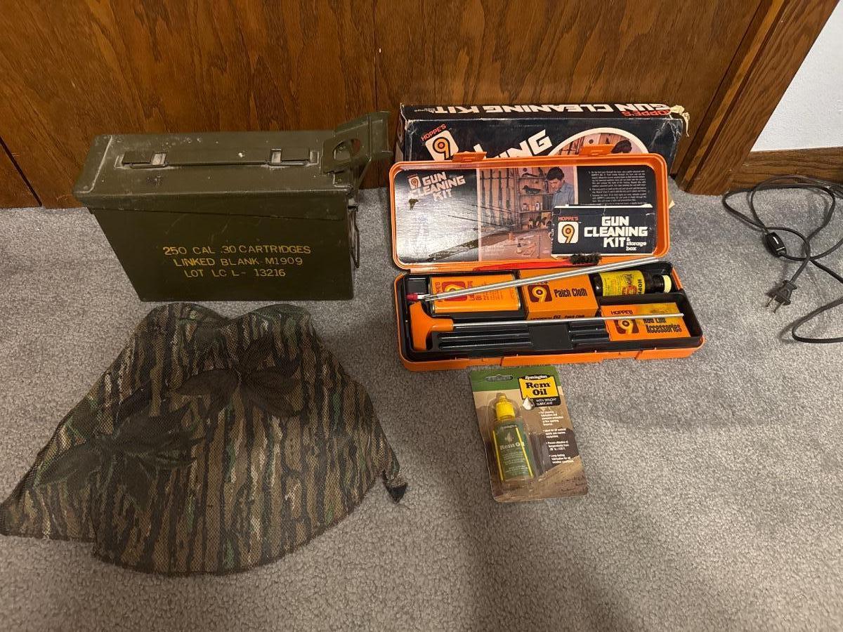 Ammo can, camo and gun cleaning kit