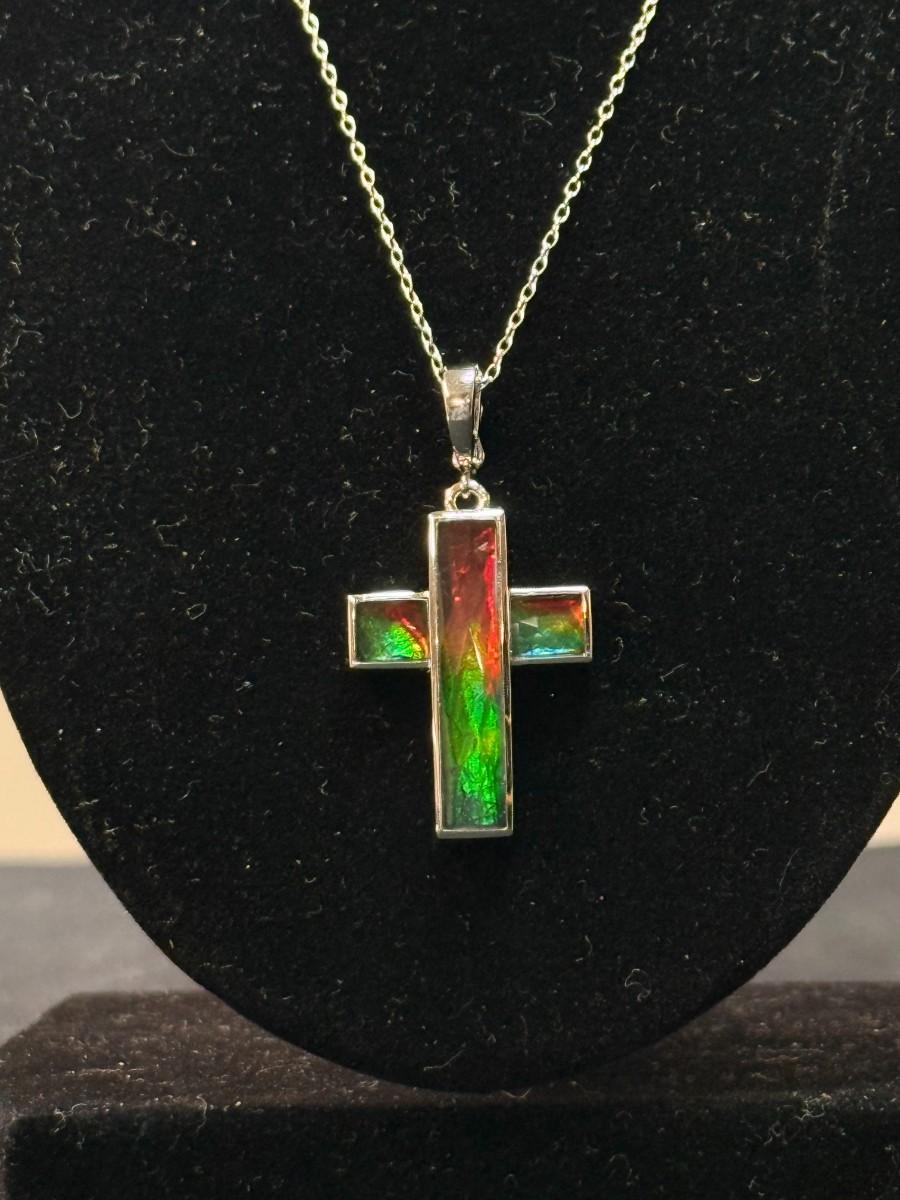 Ammolite Sterling Steel Cross