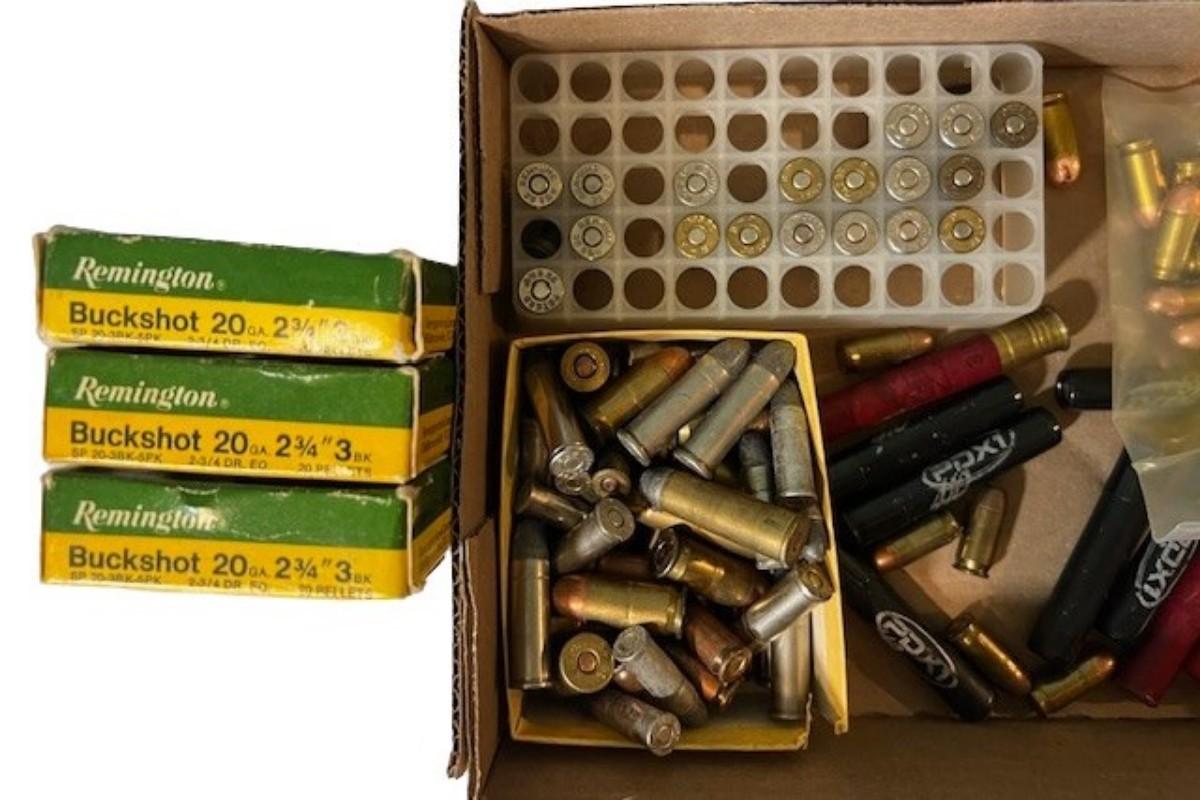 Includes .380, 20-gauge, 9mm, 410-gauge, .45, .44 Magnum, and more. Total of 100+ rounds. **NO SHIPPING ON AMMUNITION.**