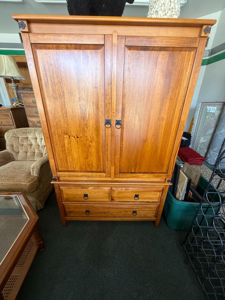 A stylish armoire offering ample storage for clothes and accessories, perfect for organizing your bedroom.