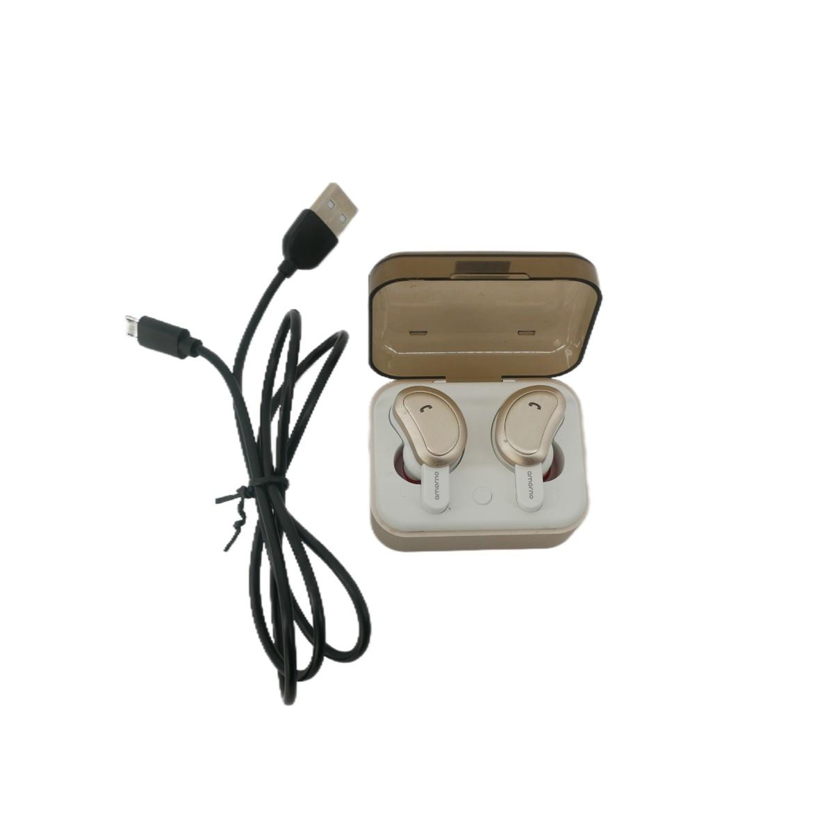 Amorno noise-cancelling bluetooth earbuds with charging cable, good condition.