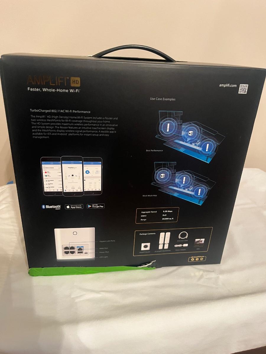Lot contains an Amplifi HD whole home WiFi in original box. Unit powered on when plugged in.