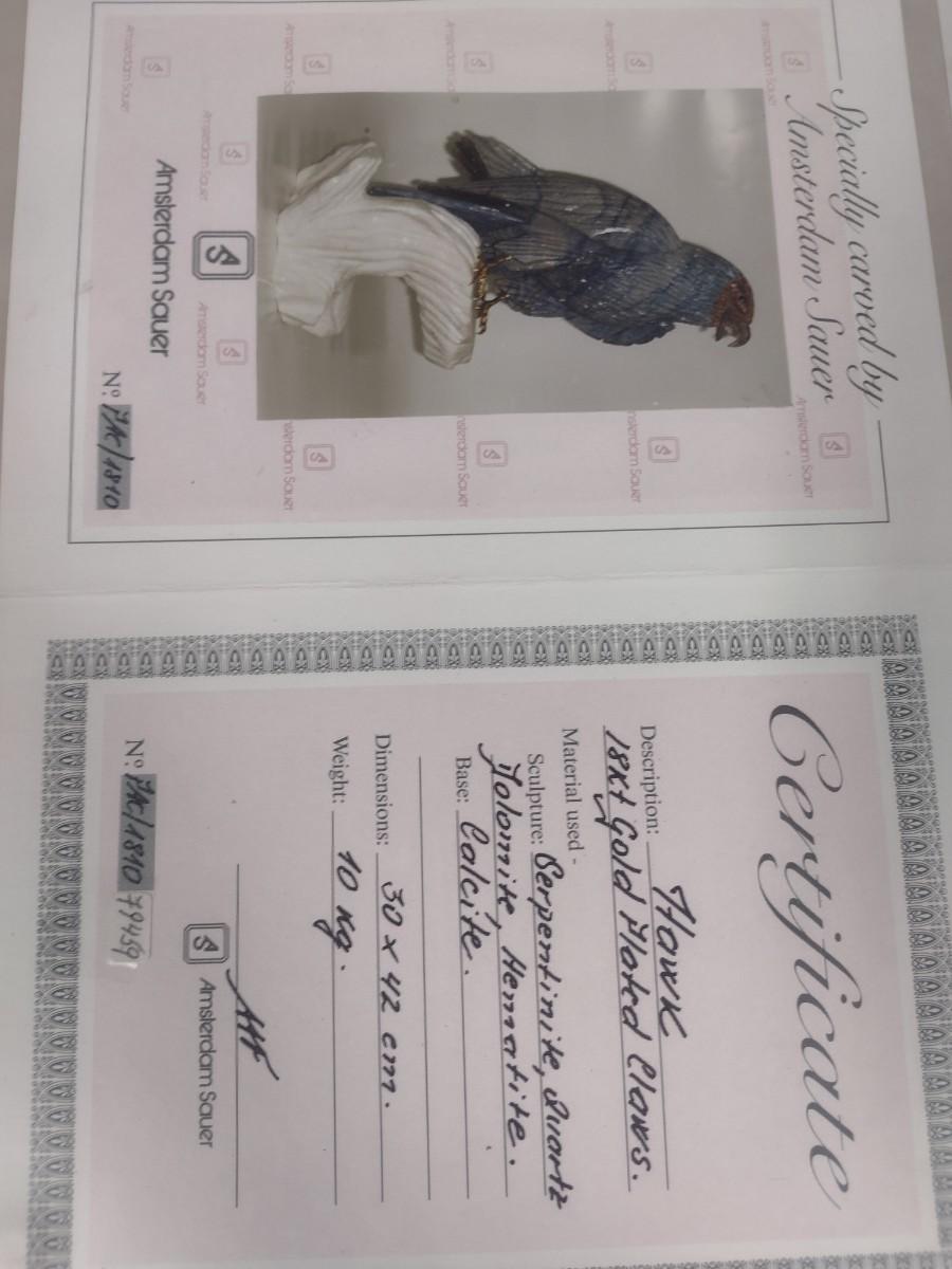 Amsterdam Sauer Hand Carved Natural Stone Blue Hawk with COA Please see picture of COA for weight, composition, etc.