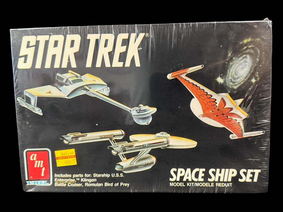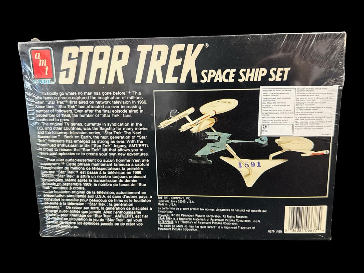 NOS. Most likely produced in 1989. This is a snap-together assembly piece that includes parts to build three ships. From the original TV series. This is in 1:1600 scale. In the original unopened factory sealed packaging. Pre-auction estimate: $25-$50.