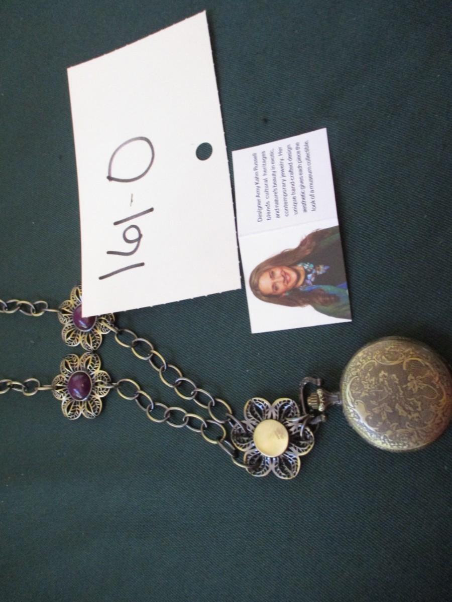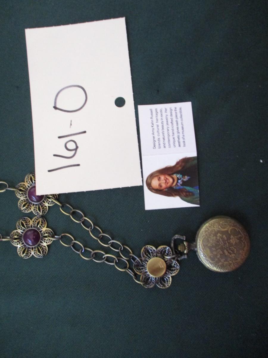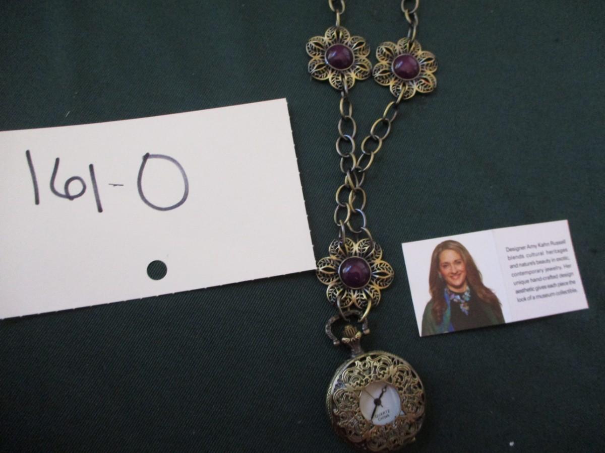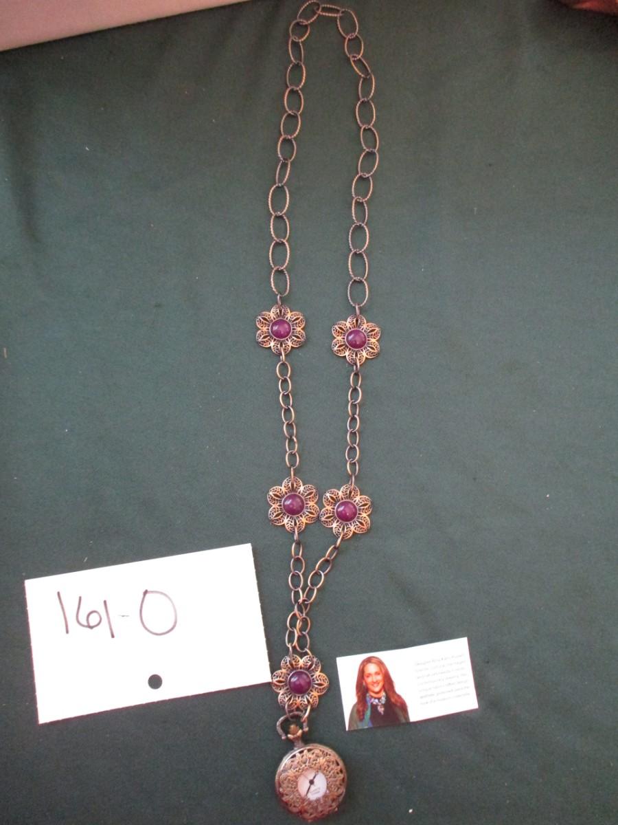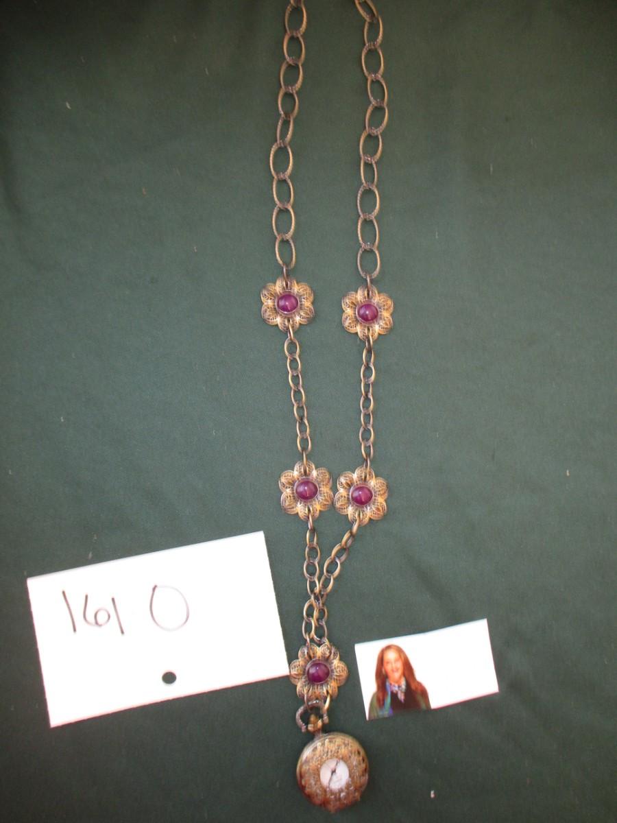 Watch pendant. Purple beads with flower design