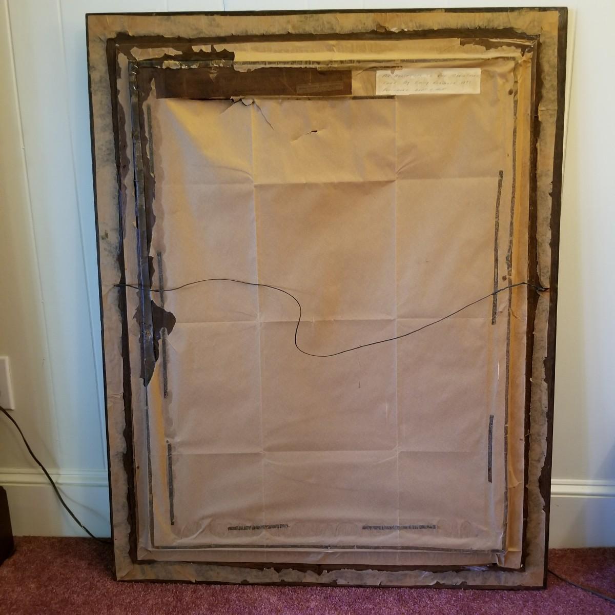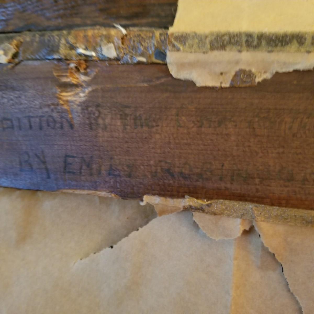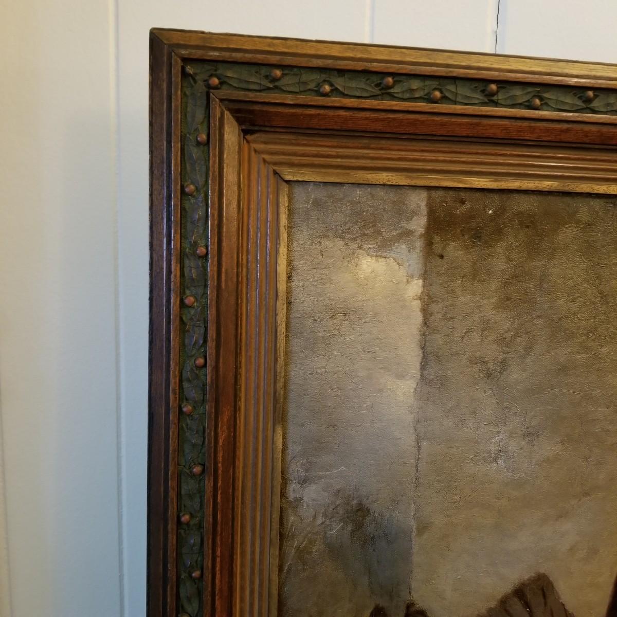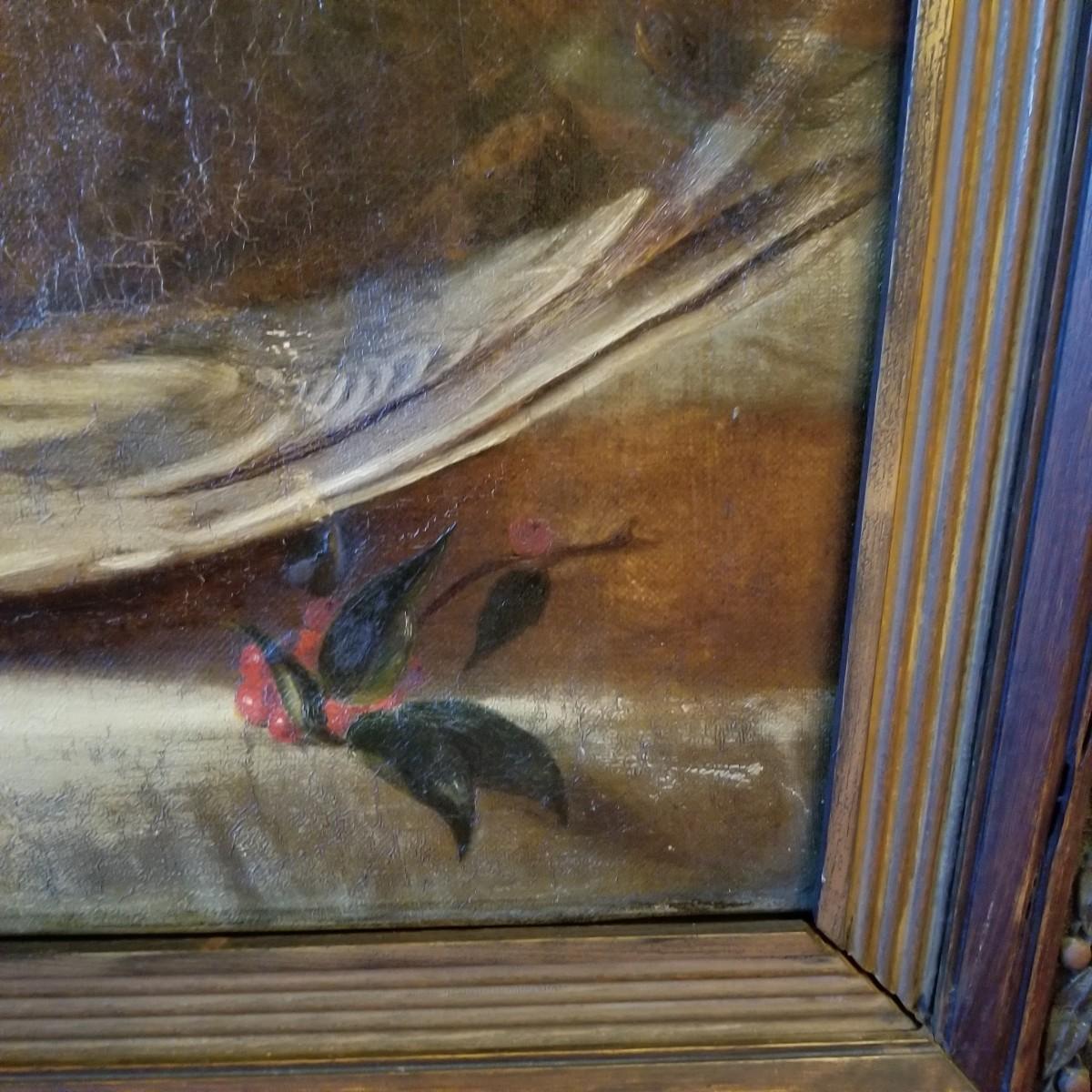 Antique oil painting on canvas of wildfowl game. Signed and dated by English artist Emily Robinson, in wood frame on stretched canvas. Has signature/date on front and also info on back of frame. See photos for specific details. Canvas is cracked in spots and there is also some missing pieces within the frame borders. Piece overall in good condition, consummate to its age . Shipping available. Shipping Art can be costly please call UPS store at 828-252-6930 for quote.