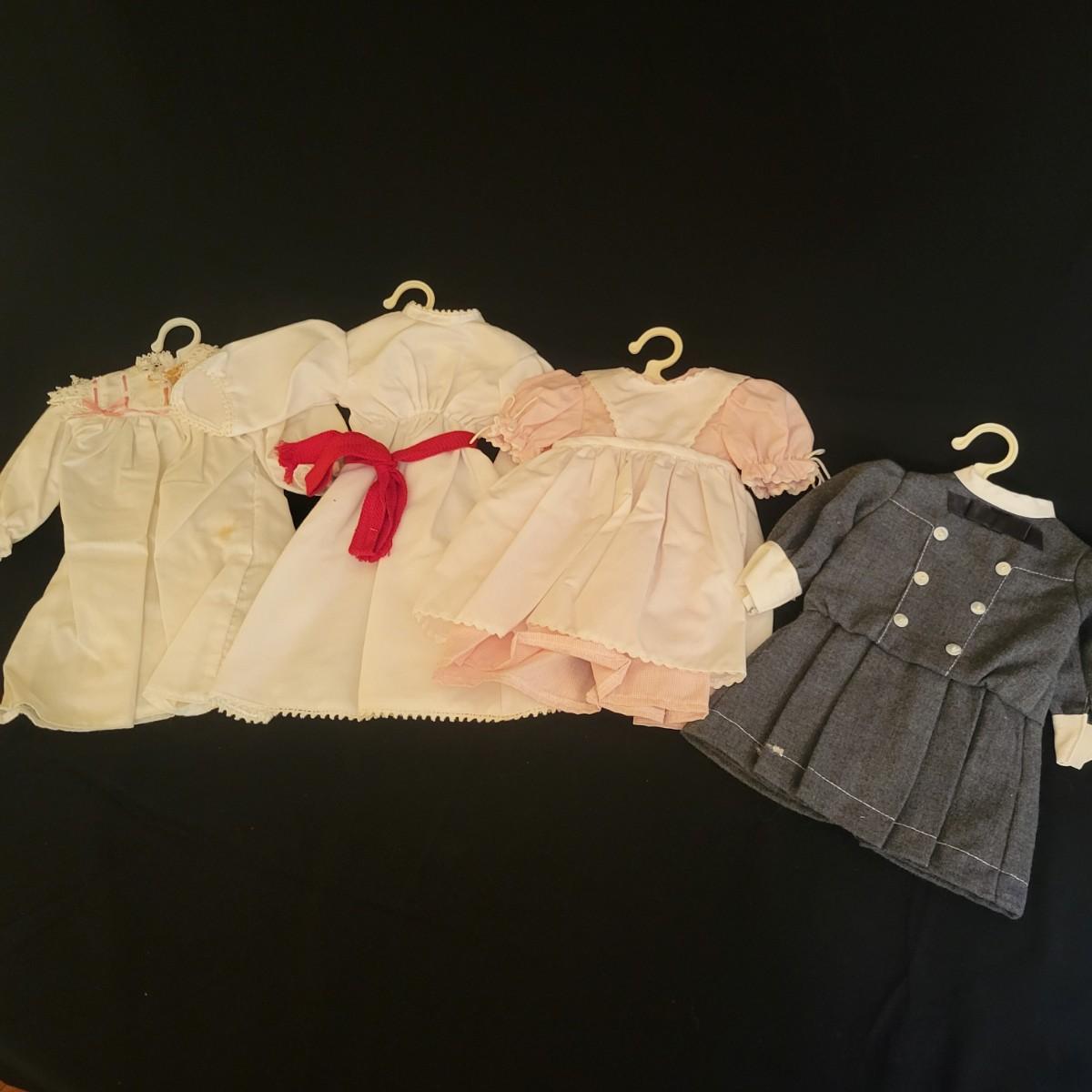 Lot includes doll-sized table and chairs with place settings, eight outfits and selection of hats and headbands. Please note that all items are for made American Girl Dolls and are not full sized.